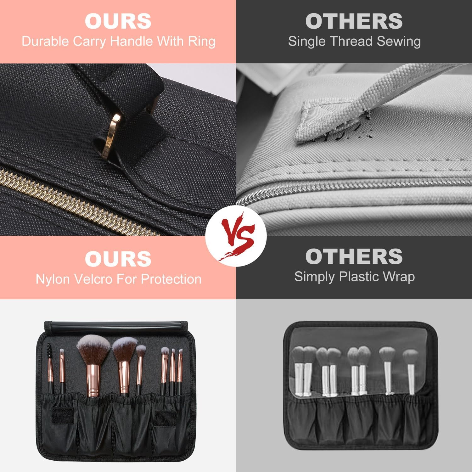 - 👍【Flexible and Large Storage Space】:Reasonable design makes the makeup bag easy to carry, not only can you store cosmetics and makeup tools, but also jewelry, electronic accessories, camera accessories, toiletries, etc. Removable EVA sponge divider Can DIY the space you need to meet your needs. Can accommodate a variety of sizes of cosmetics and makeup brushes. Which can well protect the cosmetics inside, ensure no breakage or leakage, and also keep them clean and dry.