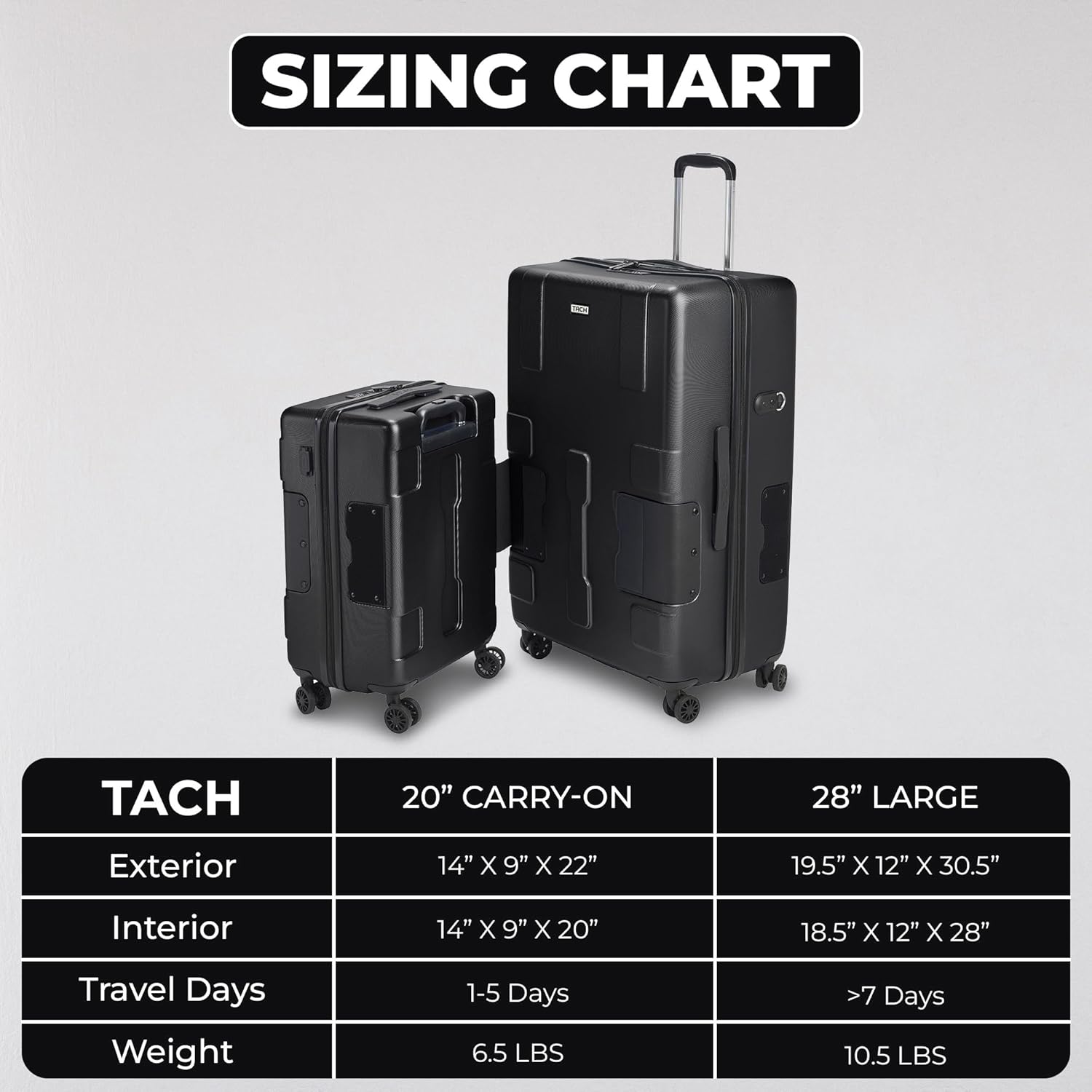 - PROVEN DESIGN, NEW FEATURES-- We've made collecting baggage seamless and efficient by making it connectable! Whether you're using the TACH Patented Design as an individual bag or a solid unit, our durable hardcase glides along with ease. Now, with new features for improved functionality!
