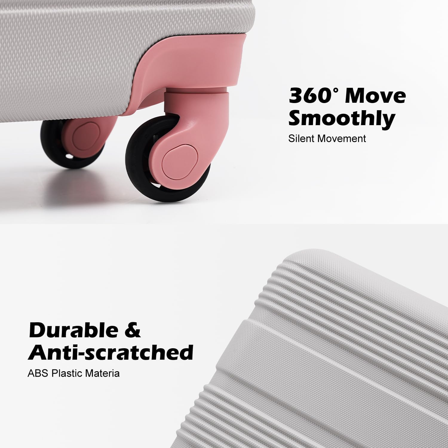 LONG VACATION 3 Piece Carry On Luggage 20 Inch Suitcase with Spinner Wheels, ABS+PC Hardshell Suitcase set with TSA Lock & YKK Zipper