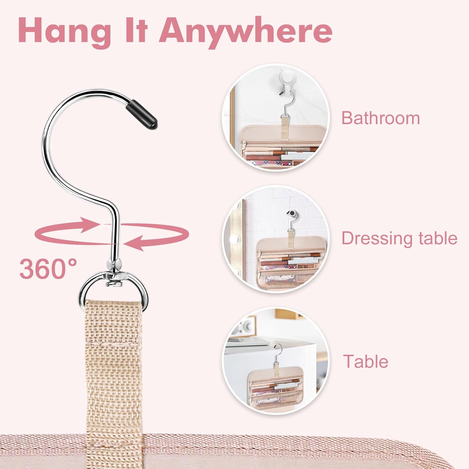- Humanized Design: This cosmetic bag hook is made of 304 stainless steel metal material, which is sturdy and functional, you can hang the cosmetic bag on the towel rack, cloakroom, or any place where you need to display your toiletries and cosmetics. Travel toiletry bag with a U-shaped opening design is more convenient for you to pick up items.