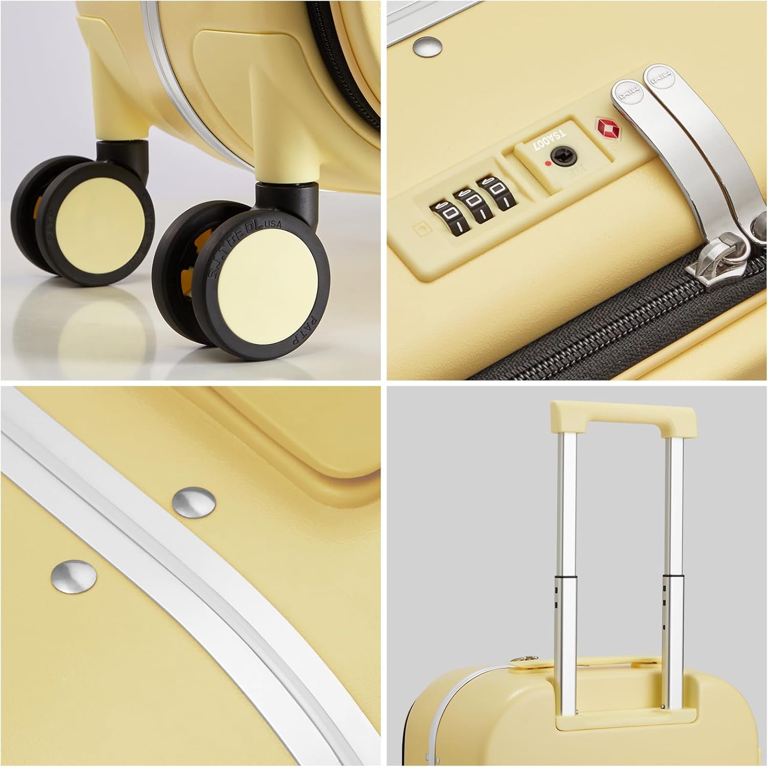 mixi Carry On Luggage, 20'' Suitcase with Front Laptop Pocket, Travel Rolling Luggage Aluminum Frame PC Hardside with Spinner Wheels & TSA Lock and Cover - Lark Yellow