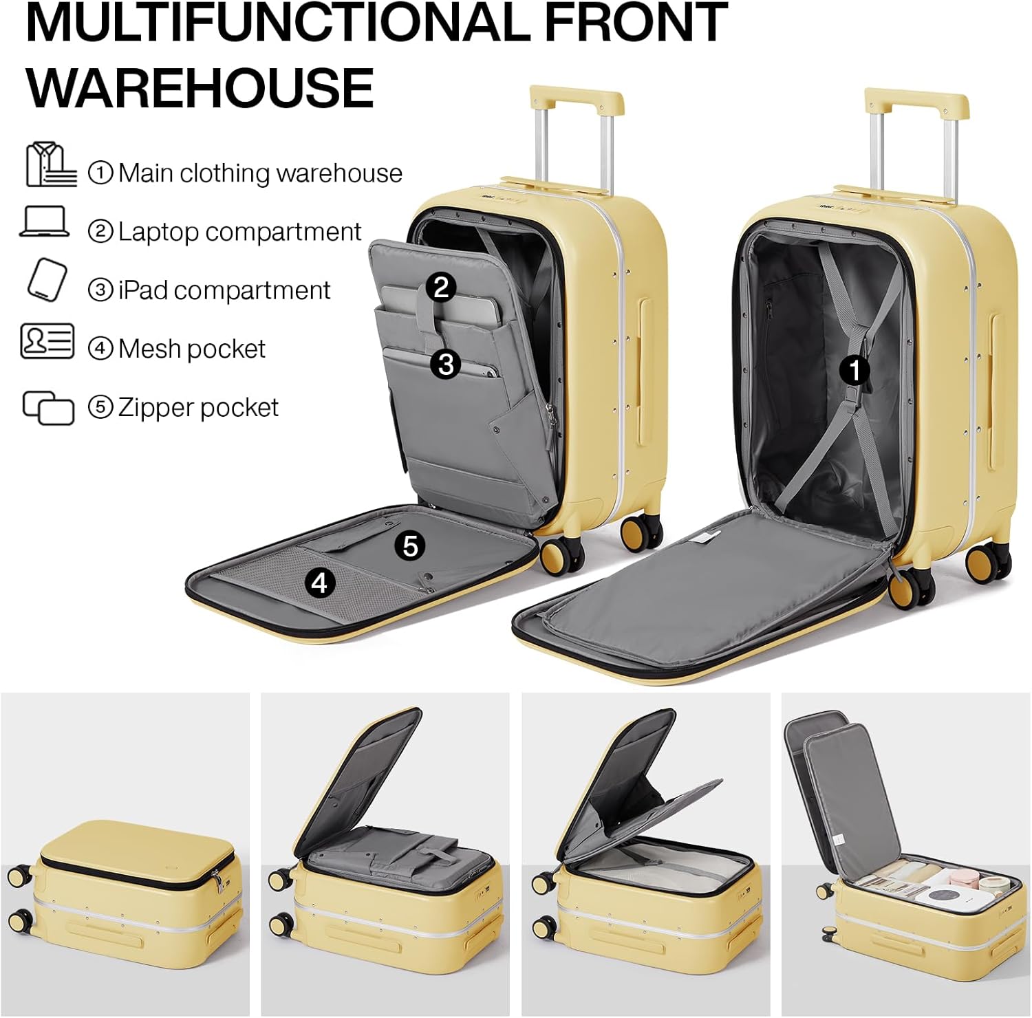 - 【INNOVATIVE DESIGN】Front Laptop Pocket helps quickly access your essentials like 15.6'' laptops, documents and more, assist you save time. Stylish and beautiful design, this hard luggage has won the Kapok Award.