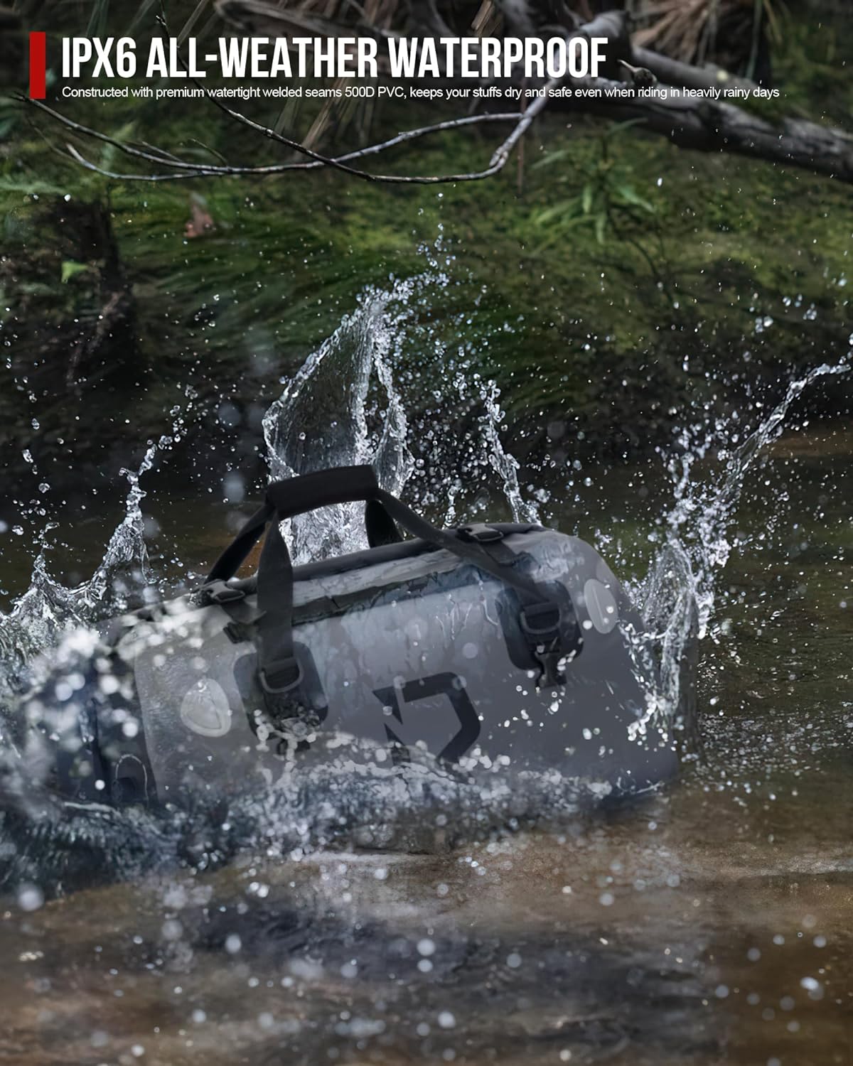 IRON JIA'S Motorcycle Dry Bag - Waterproof Duffle & Luggage Tail Bag Saddle Bags with Roll Top Closure, Shoulder Straps, Inner Pocket and Mesh Pocket (Grey, 70L)
