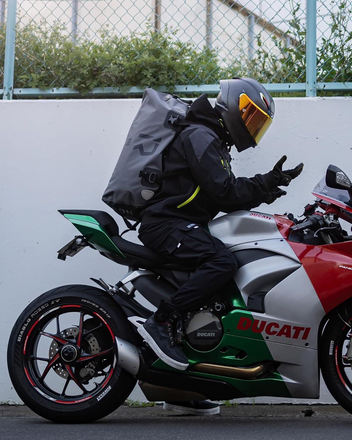 - 【Ample Capacity】This motorcycle tail bag comes in 30 L, 50 L, and 70 L sizes, providing you with generous storage space. Additionally, internal pockets (30 L accommodates a 15-inch tablet, while 50 L and 70 L accommodate a 17-inch tablet) and external mesh pockets provide extra storage options, facilitating the separation of wet and dry items. Equipped with MOLLE attachment points for hanging keychains and water bottles, and an air valve for maximizing capacity by releasing excess air