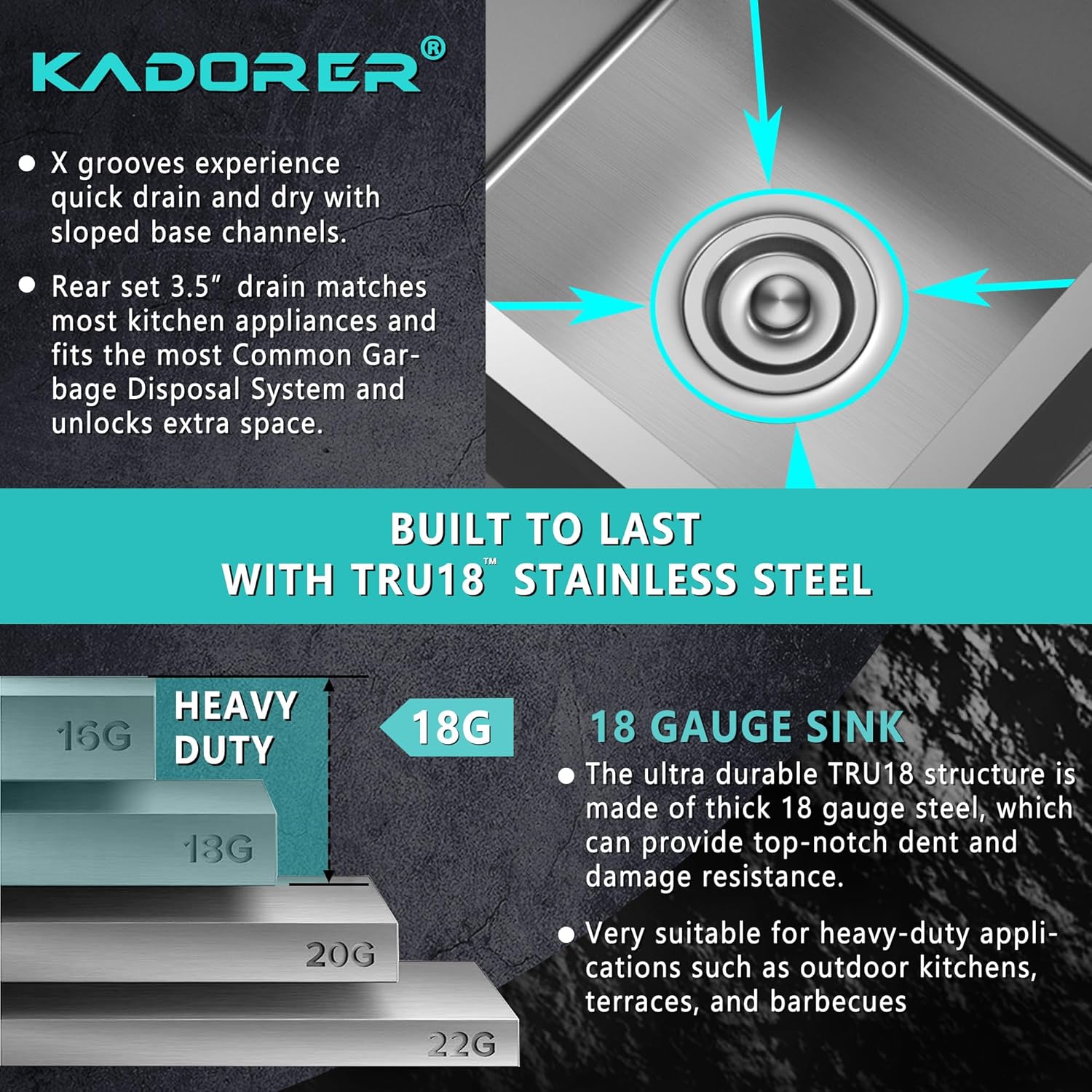 - PREMIUM MATERIAL: This Single Bowl Bar Sink is made of high quality, ultra-thick 18 gauge T304 stainless steel with a brushed finish to ensure scratch and stain resistance, sturdy and durable, will not fade over time.