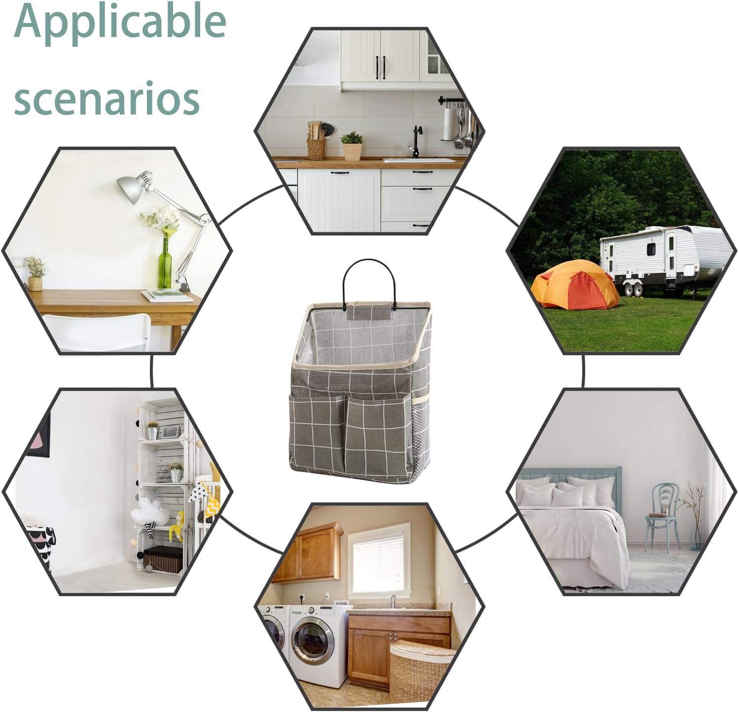 2pcs Wall Hanging Storage Bag,Wall Hanging Organizer Bags with Pockets, Wall Organizer Storage for Dormitory Bathroom Bedroom Kitchen(Grey Grid)