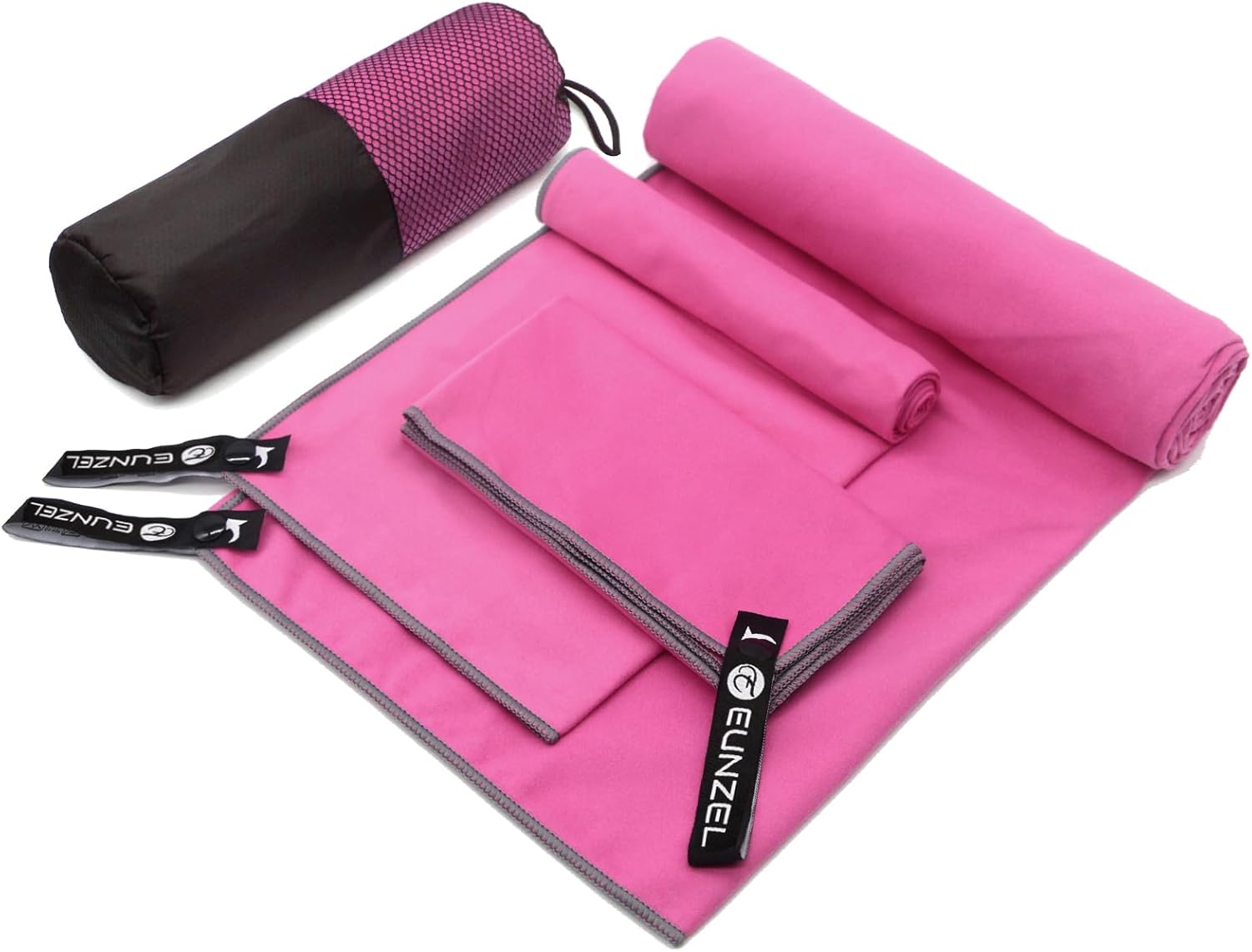 Eunzel Quick Dry Camping Towel, Microfiber Travel Towel 3 Size at 1 Pack,Fast Drying Towel Set for Camping, Beach, Gym, Sports, Yoga & Swimming Pool, Rose Red