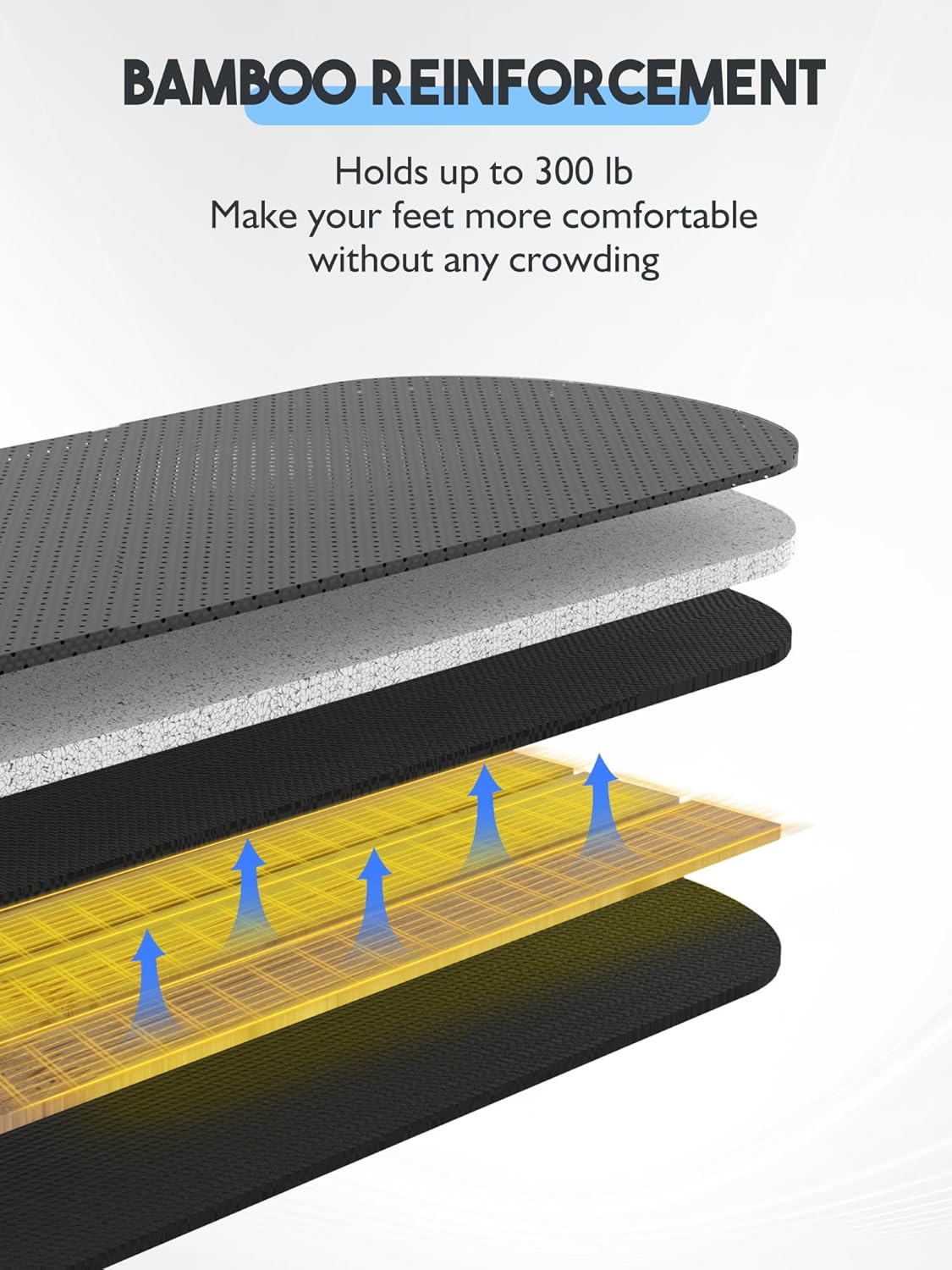 - More Comfort: To solve the common problem of foot squeezing found in typical products, we uniquely utilize bamboo strips as the support structure. This design prevents deformation, allowing your feet to rest smoothly without being cramped together, greatly improving your user experience. USPTO Patent Pending