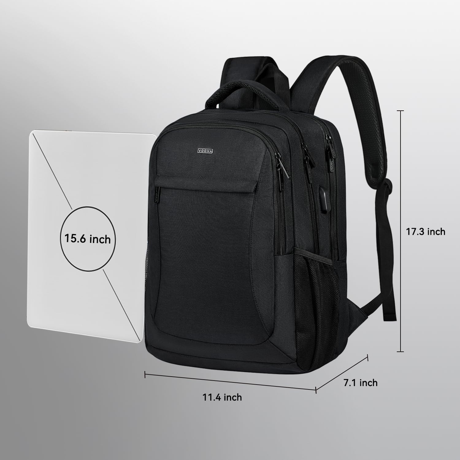 Voova Travel Laptop Backpack, Business Work Laptop Backpack for Women & Men with USB Charging Port, Waterproof Slim Durable College Computer Bag Fits 15.6 Inch Laptops and Notebook, Black