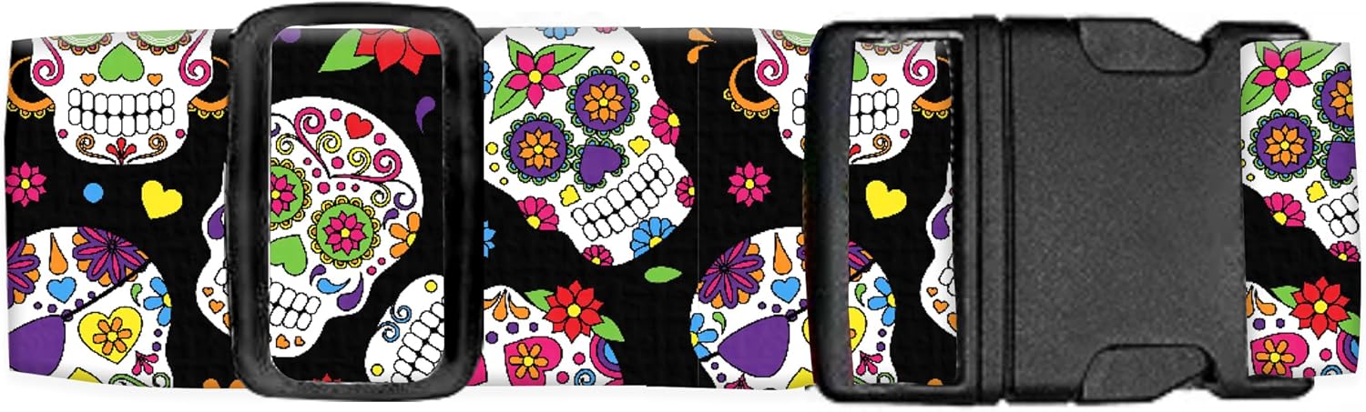 Luggage Straps for Suitcases Travel Belt Accessories, Cute Suitcase Strap, Adjustable Luggage Belt Strap, Heavy Duty with Quick-Release Buckle Luggage Strap Cool Flower Skull