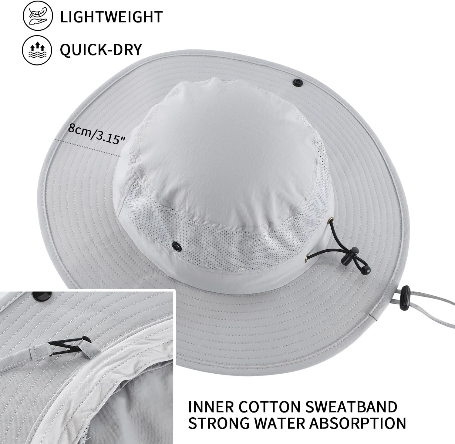 Home Prefer UPF50+ Mens Sun Hat Wide Brim Womens UV Protection Beach Bucket Hat for Fishing Hiking Snap Up Cowboy Hat