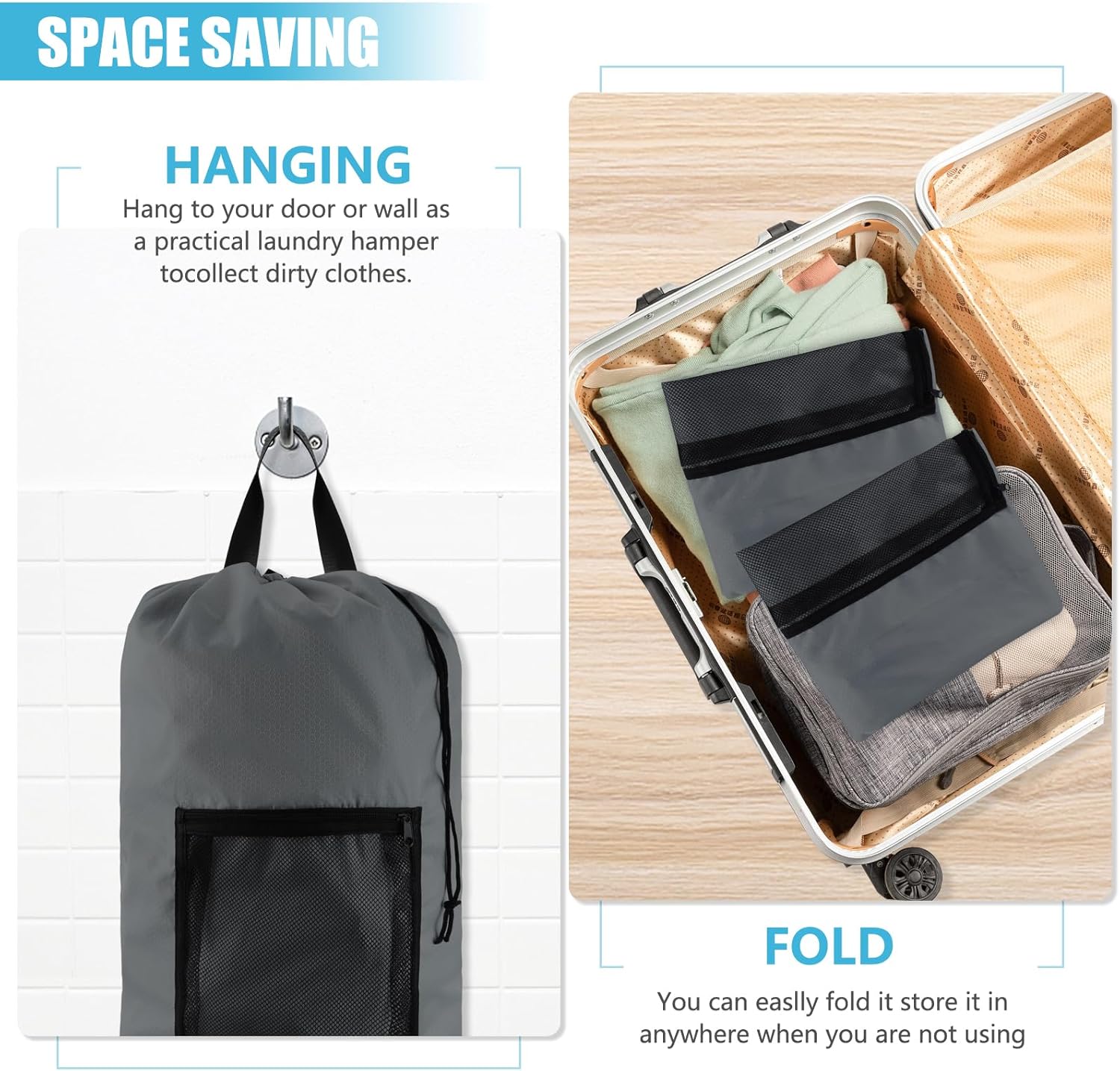 - [Suitable for Multi-Occasion] - The travel laundry bag is easy to fold and store in the suitcase, suitable for dorm, apartment, college,home, laundry shop, hiking, camping, or picnics.