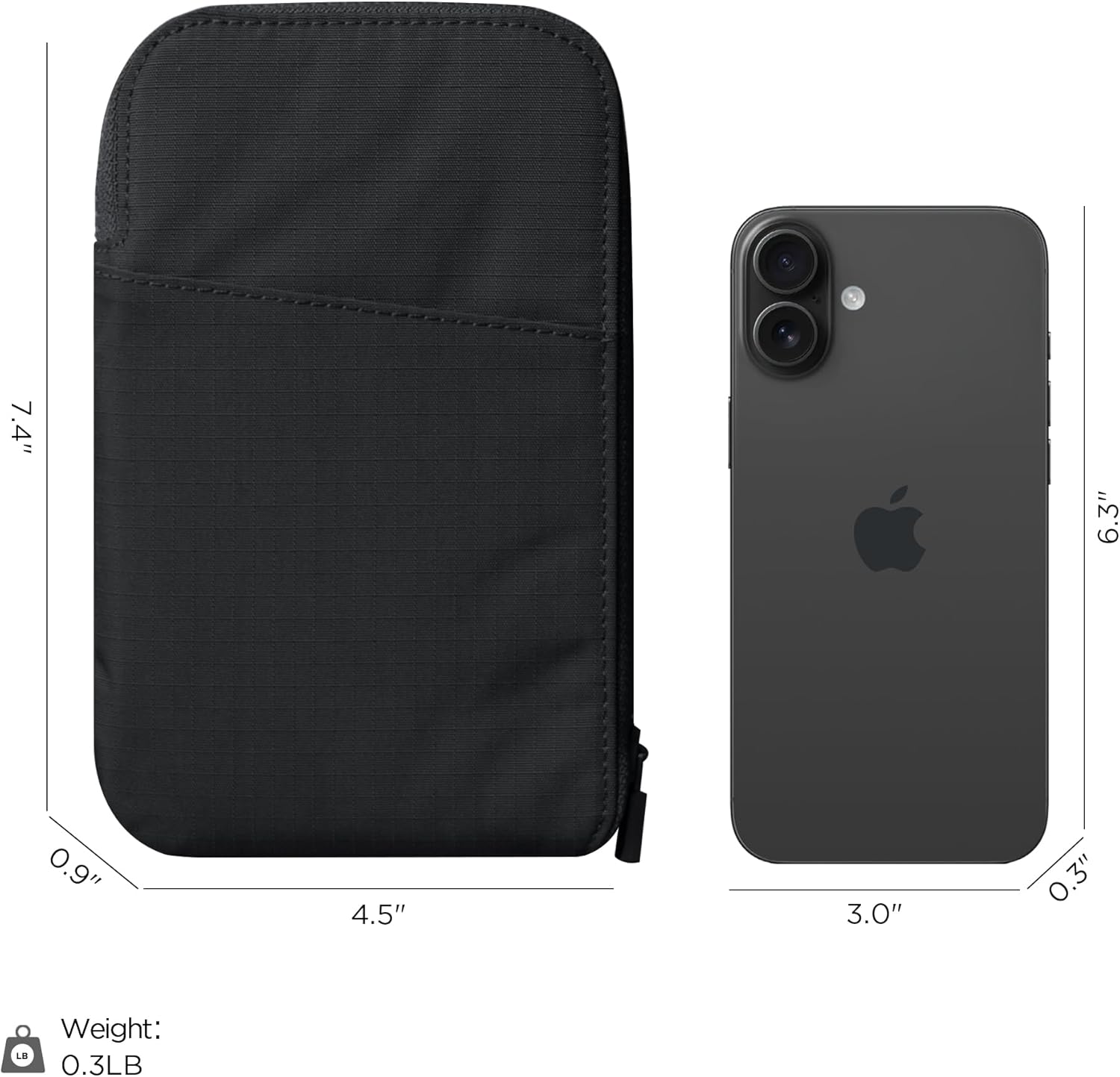 - Travel Wallet: Traveling light done right, weighing just 0.3LB, this water-resistant wallet fits 4 passports, 4 cards, tickets, and cash in a slim 4.5"x7.4"x0.9" design. Maximum storage, minimum bulk.