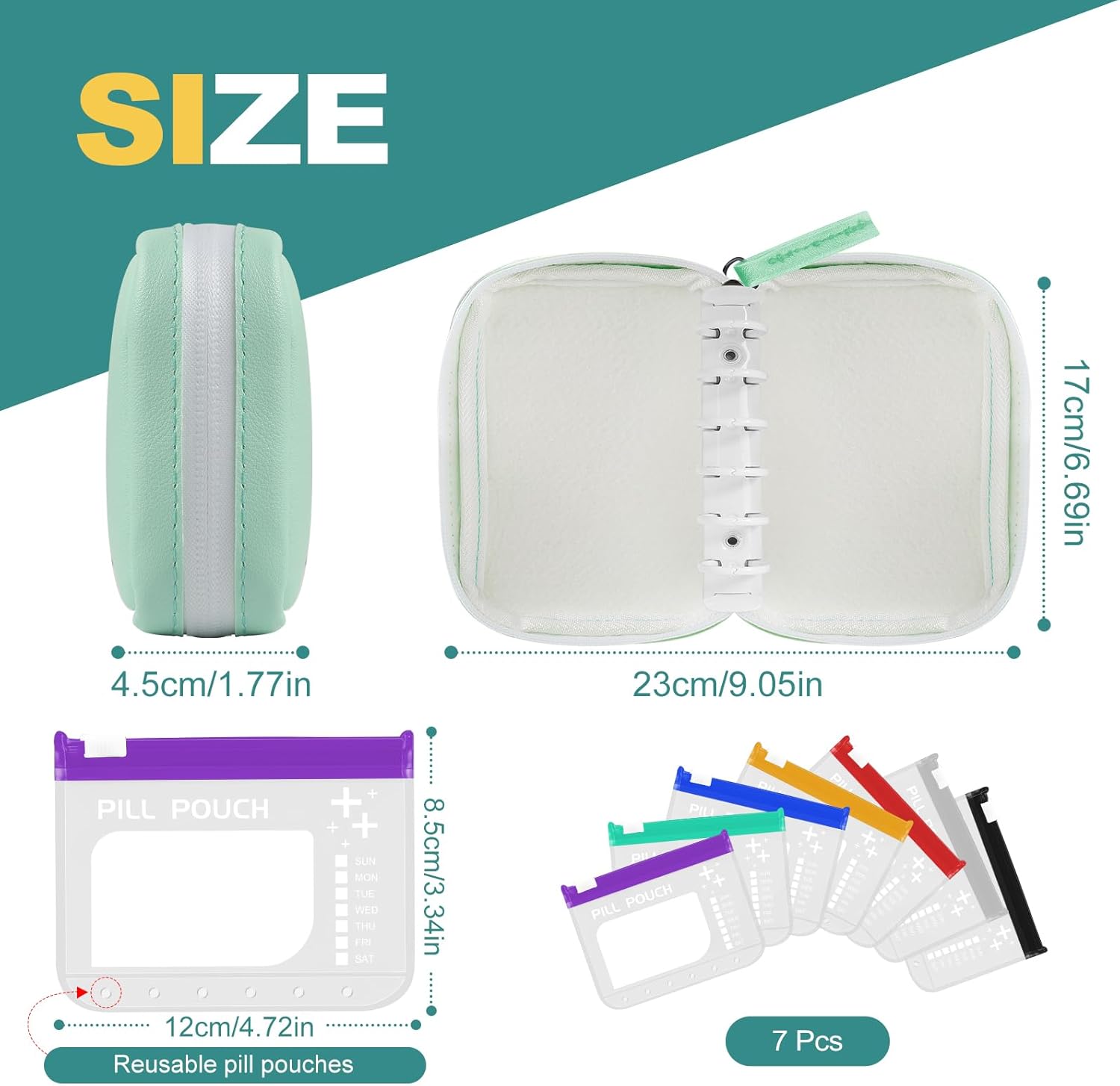 - STYLISH PILL ORGANIZER BAG - The Timueetech pill organizer bag includes a binder, paired with 7 EVA pouches, which can be used to store your pills and medications, or small jewelry such as earrings, rings, etc