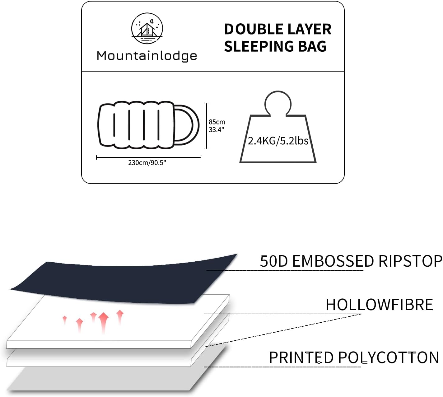 - 【Water Resistant and Skin-friendly Fabric】- Mountainlodge camping sleeping bag designed the Polyester which can be skin-friendly and waterproof.This means that when you use this sleeping bag outdoors, it can protect you from cold environments.Not only that, this travel sleeping bag can also be used indoors. When you want to take a nap on the sofa or bed, you can fully open it and use it as a blanket.