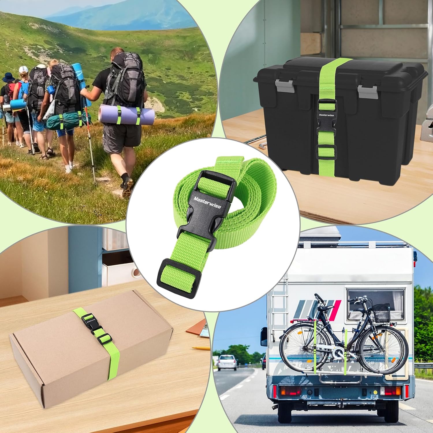 Buckle Straps with Clips, Adjustable Nylon Strap with Buckle, Packing Strap, Green 4 Pack (6’x1)