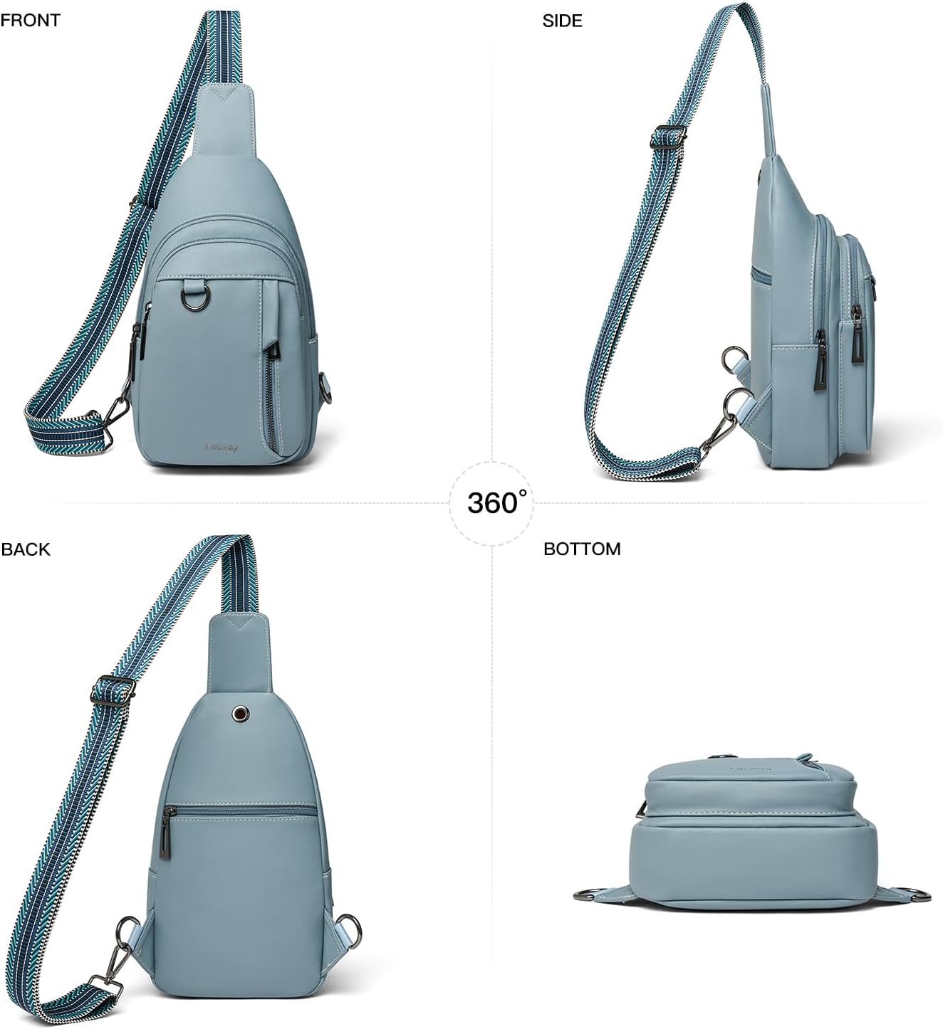 - Premium Material: Our new cross body bag for woman is made of premium faux leather, the chest pack's body and shoulder straps are reinforced with sturdy stitching for durability.An earphone hole on the back pocket enables you to enjoy music easily.