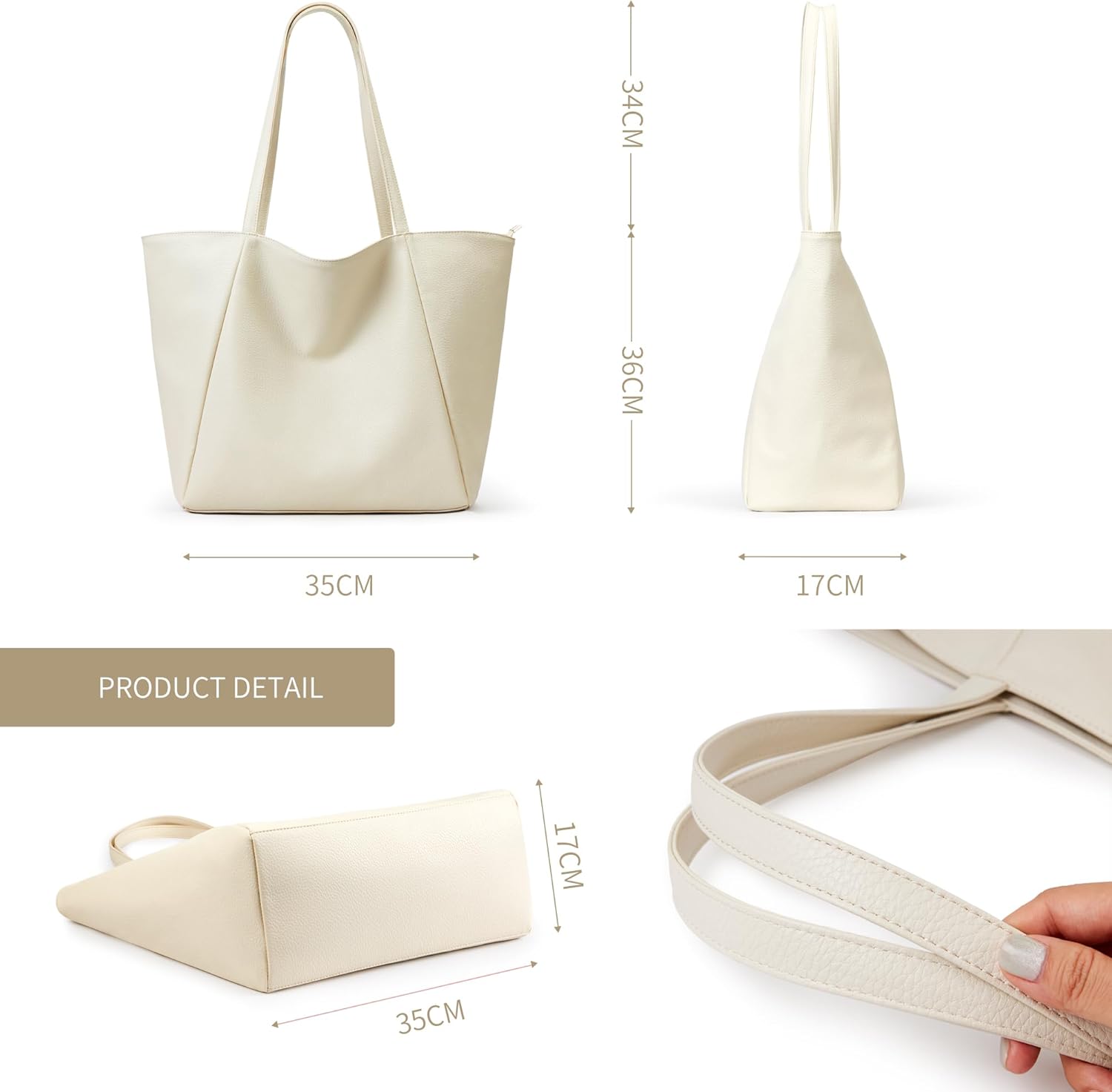KALIDI Large Tote Bag Vegan Leather Casual Zipper Work Bag Weekender Hobo for Women 23L Oversize Shoulder Travel Purse