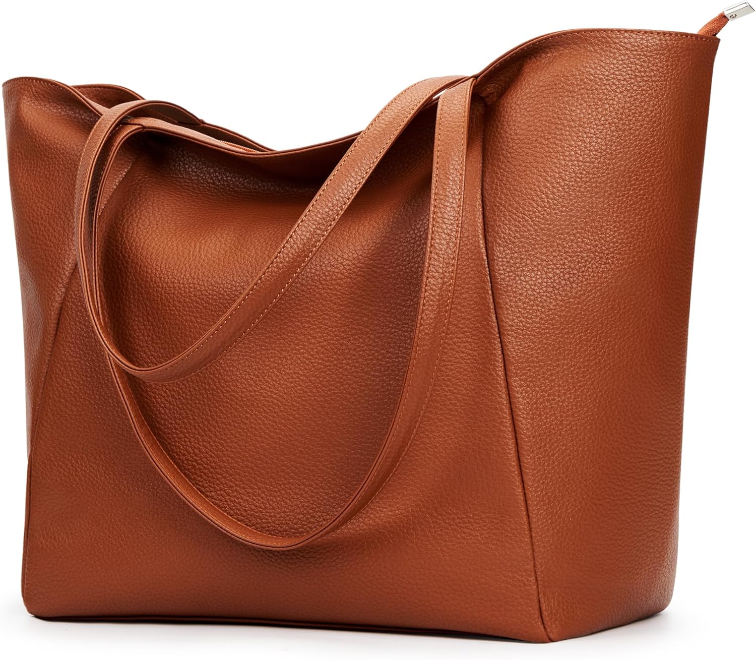 KALIDI Large Tote Bag Vegan Leather Casual Zipper Work Bag Weekender Hobo for Women 23L Oversize Shoulder Travel Purse