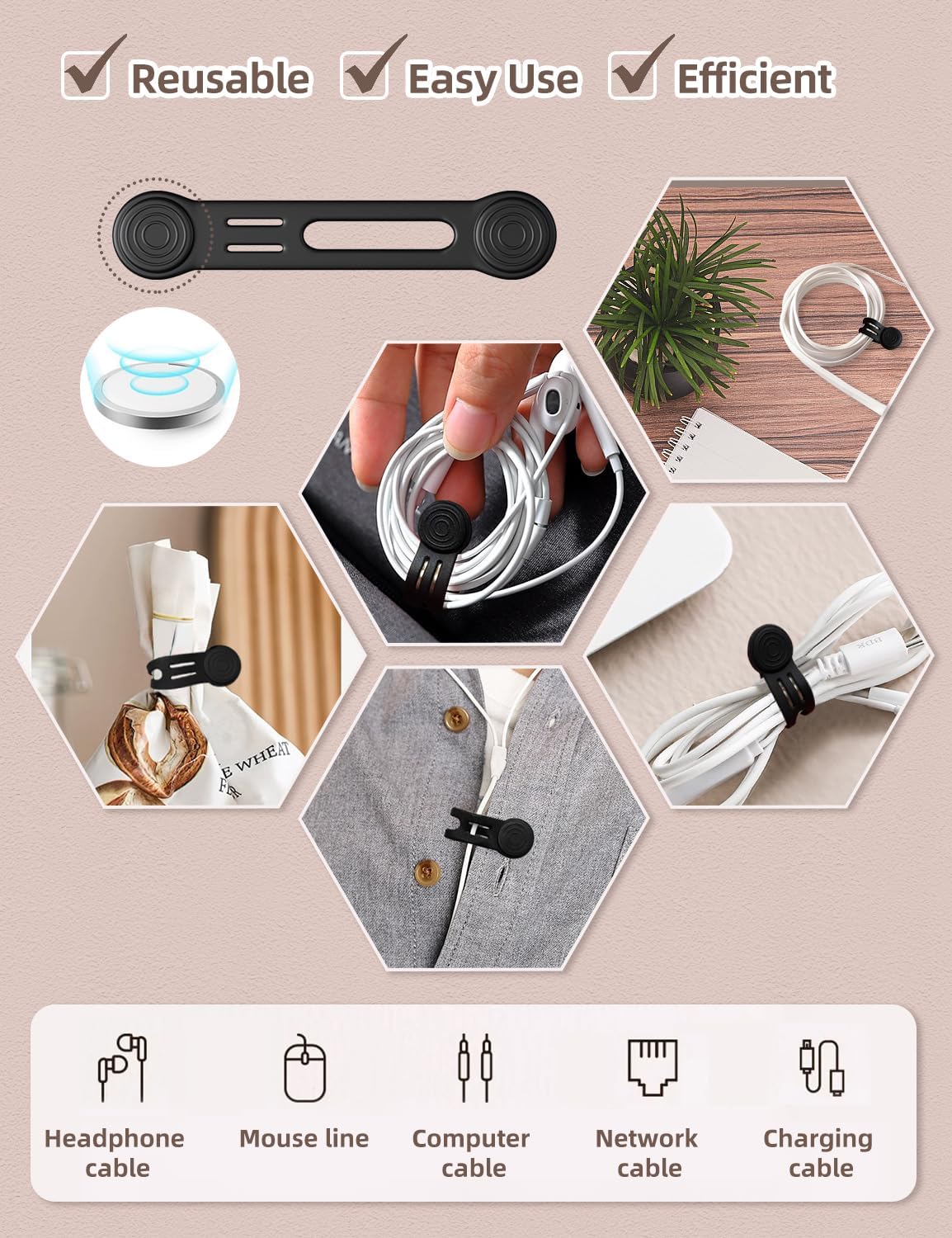 - ◎Upgraded Cord Management — Measuring 3" in length, our hollowed-out magnetic cable ties are perfect for work, home, or on-the-go use, keeping your cables neat and tidy.