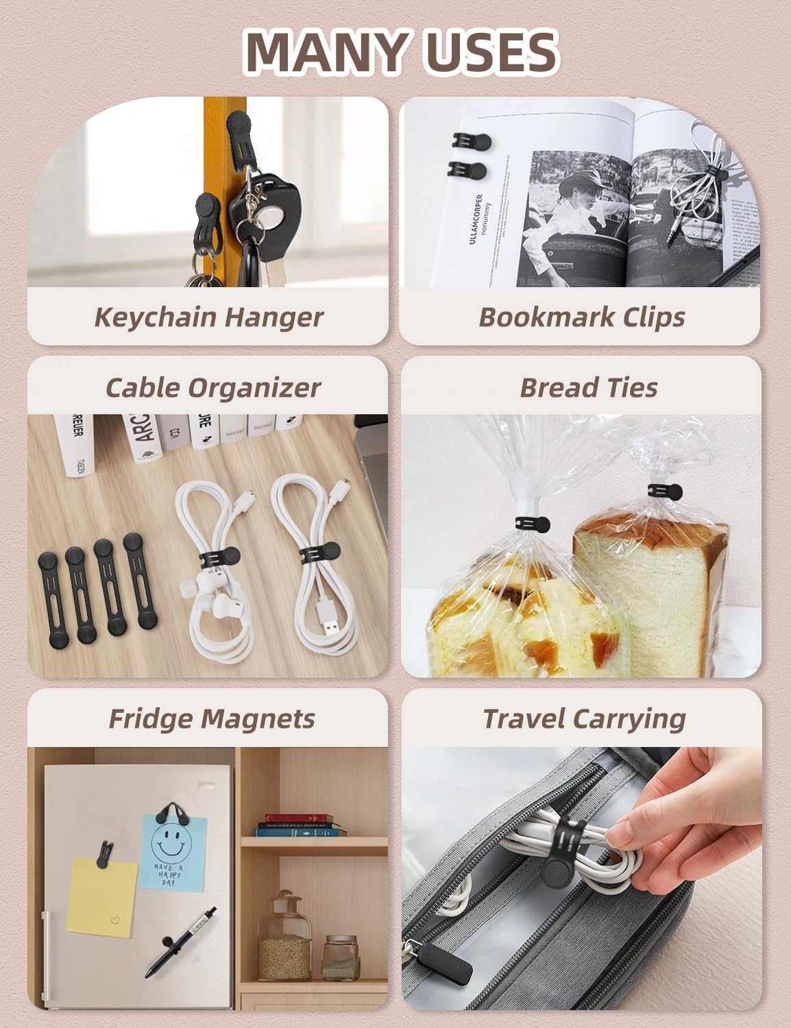 - ◎User Friendly — Simply twist the wire to the desired length, the cable ties with magnet will snap together automatically. Without leaving residue or causing damage. Plus, they won't interfere with data transfer on charging cables, USB, or earbuds.