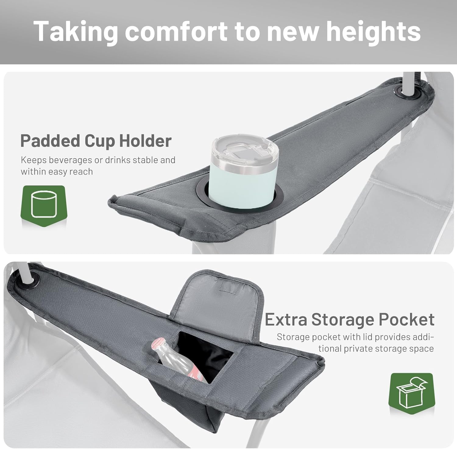 TIMBER RIDGE Oversized Folding Camping Chair for Adults, Support 550 LBS Heavy Duty with Cup Holder Side Pocket for Camping, Lawn, Picnic, Grey
