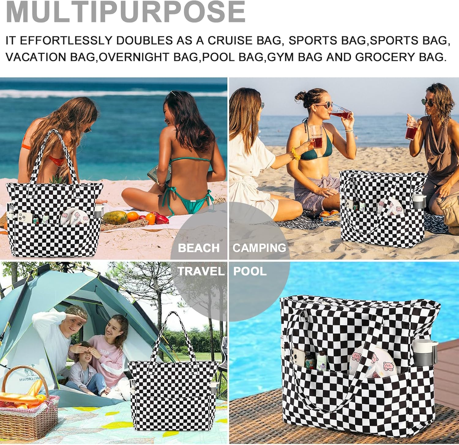 Waterproof Beach Tote Pool Bags for Women Ladies Extra Large Gym Tote Carry On Bag With Wet Compartment for Weekender Travel