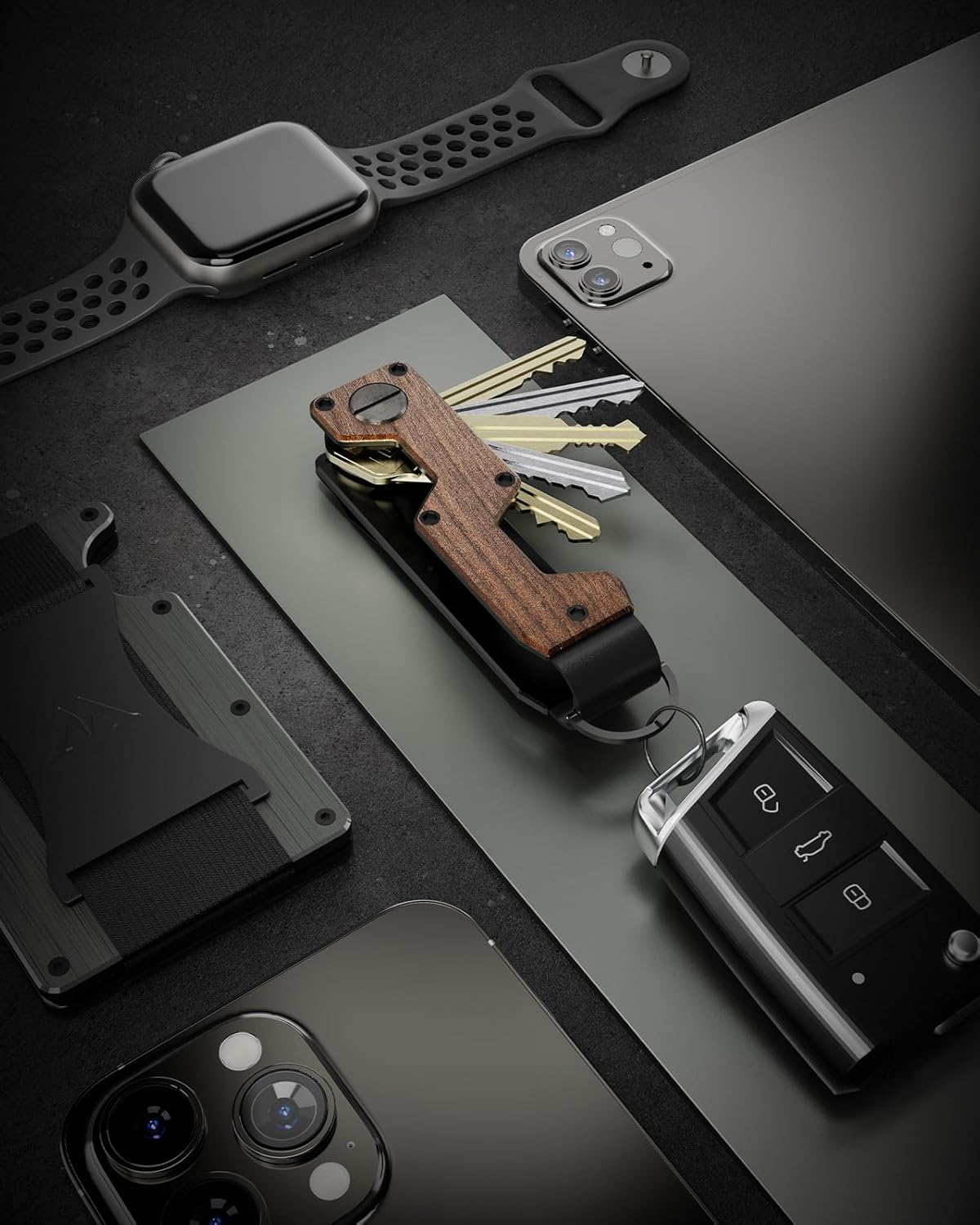- MINIMALIST KEY ORGANIZER - Experience the MINBERAND Compact Keycase – a sleek solution that eliminates jingling keys, prevents thigh discomfort, and shields your wallet, phone, and accessories from scratches.
