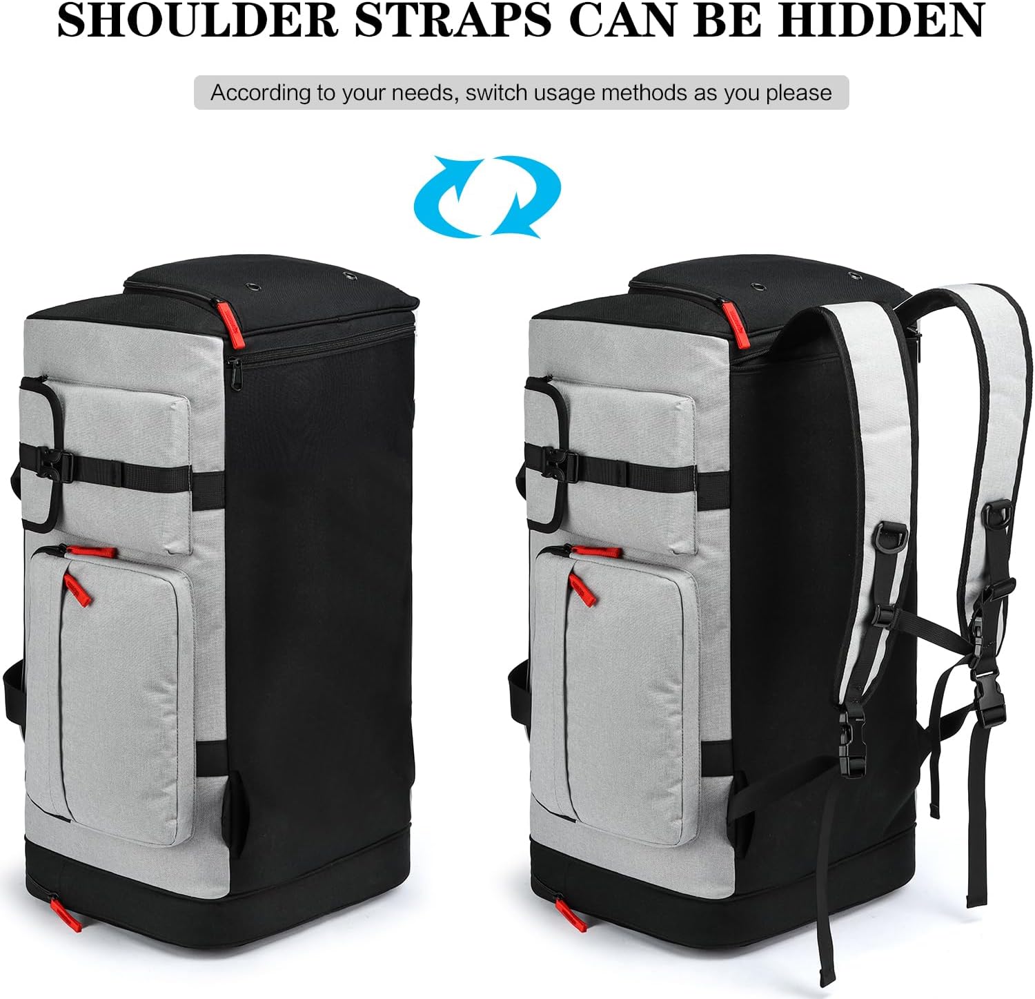 - 【Duffel Bag & Backpack】Lyweem duffle bag for men can be used as a backpack. It is designed with adjustable padded backpack straps and a sternum strap to keep you comfortable even when carrying heavy loads. The backpack straps can be completely hidden, allowing you to easily switch between holdall bag, crossbody and backpack.