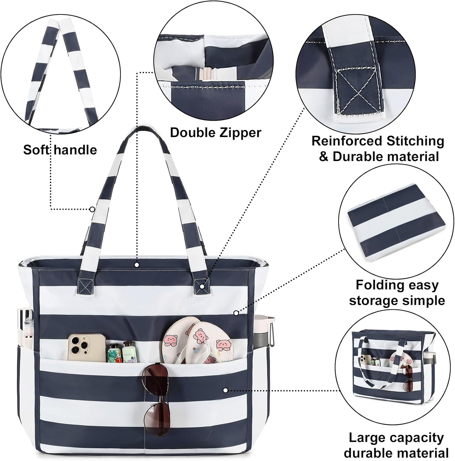 Waterproof Beach Tote Pool Bags for Women Ladies Extra Large Gym Tote Carry On Bag With Wet Compartment for Weekender Travel