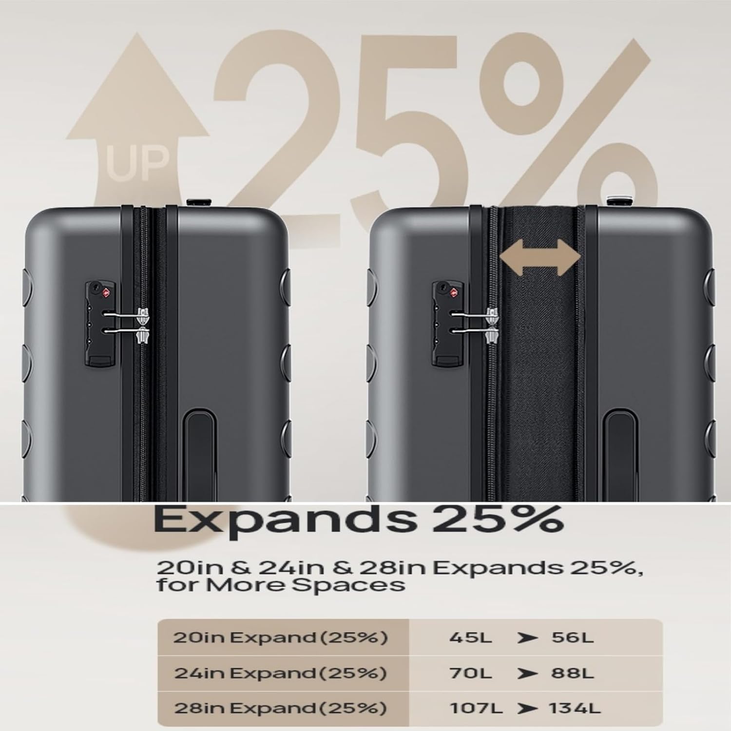 Carry on Luggage 22 X 14 X 9 Airline Approved, 20 Inch Luggage for 3-5 Days Travel, Double Spinner Wheels, 100% Hardshell PC, TSA Lock (00-Black (Expandable), Checked 28-Inch)