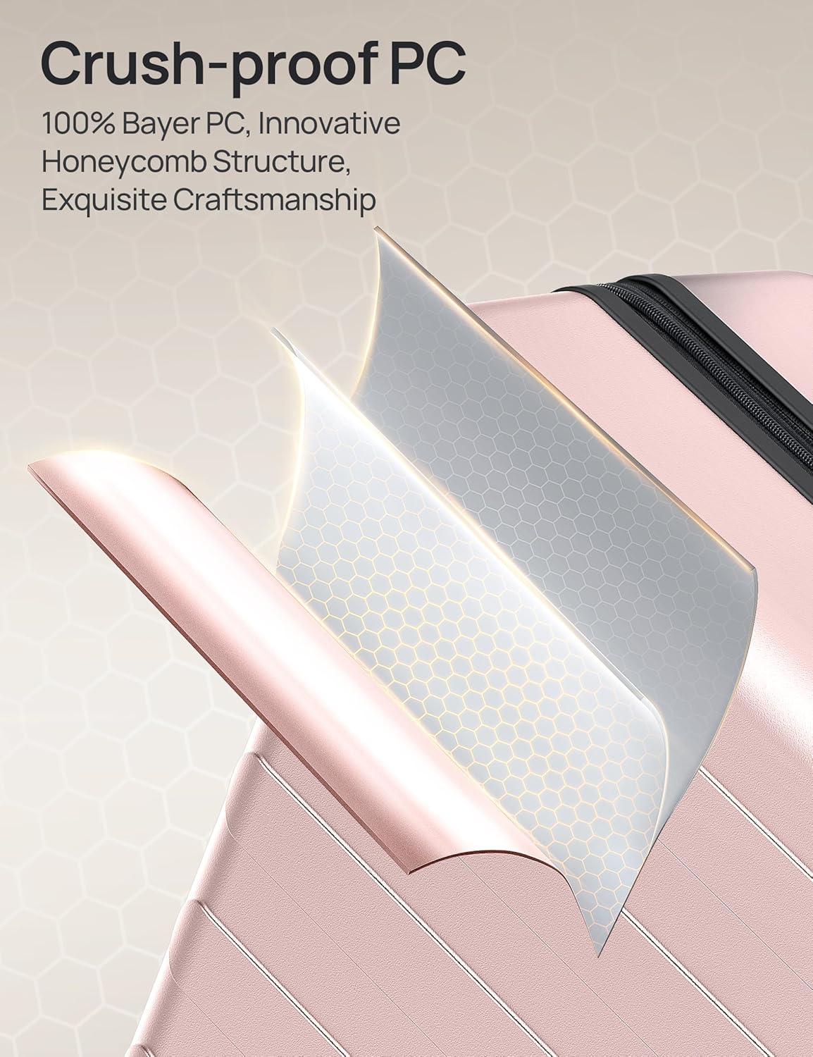 Carry on Luggage 22 X 14 X 9 Airline Approved, 20 Inch Luggage for 3-5 Days Travel, Double Spinner Wheels, 100% Hardshell PC, TSA Lock (00-Pink (Expandable), Set 2PCS (20-Inch/28-Inch))