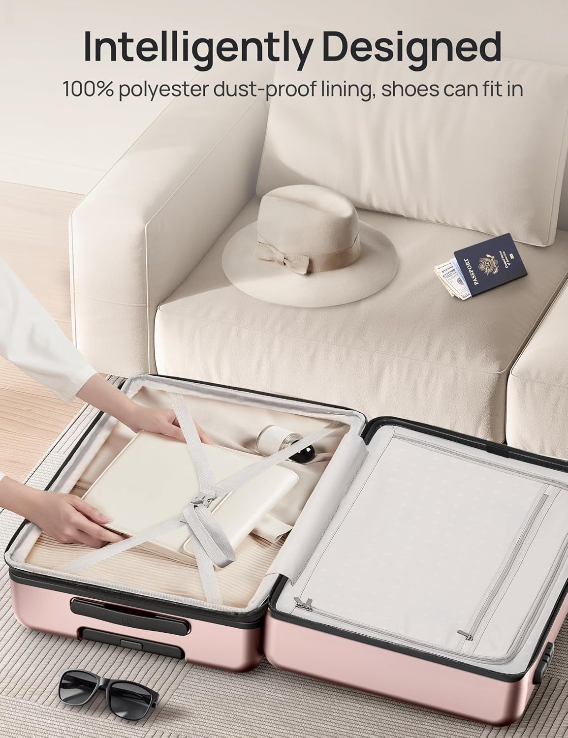 Carry on Luggage 22 X 14 X 9 Airline Approved, 20 Inch Luggage for 3-5 Days Travel, Double Spinner Wheels, 100% Hardshell PC, TSA Lock (00-Pink (Expandable), Carry-On 20-Inch)