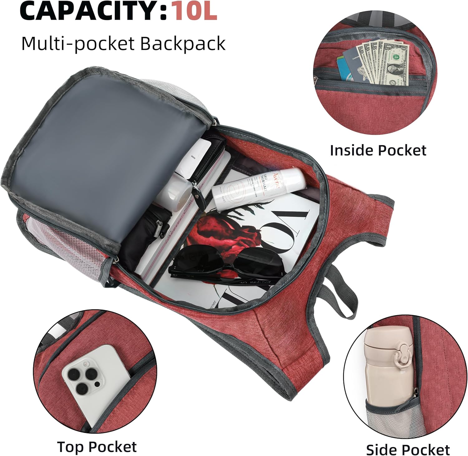 - 【Lightweight Small Backpack】:This small travel backpack weighs only 0.4 pounds but has a capacity of 10 liters allows you to pack some essential items on your outdoor adventures. Lightweight backpack yet well made. The hiking backpack is Suitable for light duty-on used.