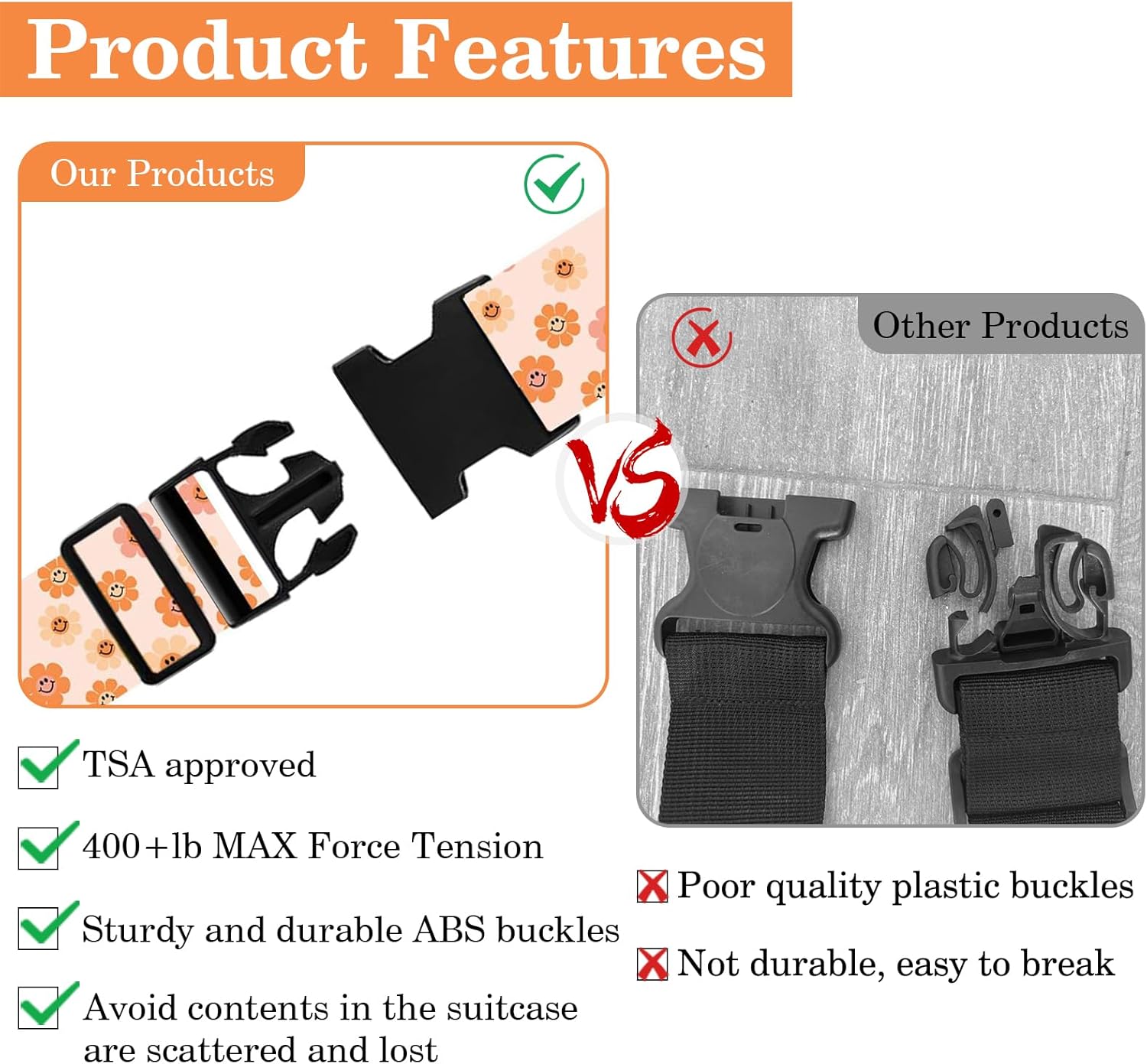 Luggage Straps for Suitcases TSA Approved, Luggage Identifiers for Suitcase, Adjustable Suitcase Strap for Baggage Security with Cute Patten, Travel Necessary Accessories 2Pack (Orange Flower)