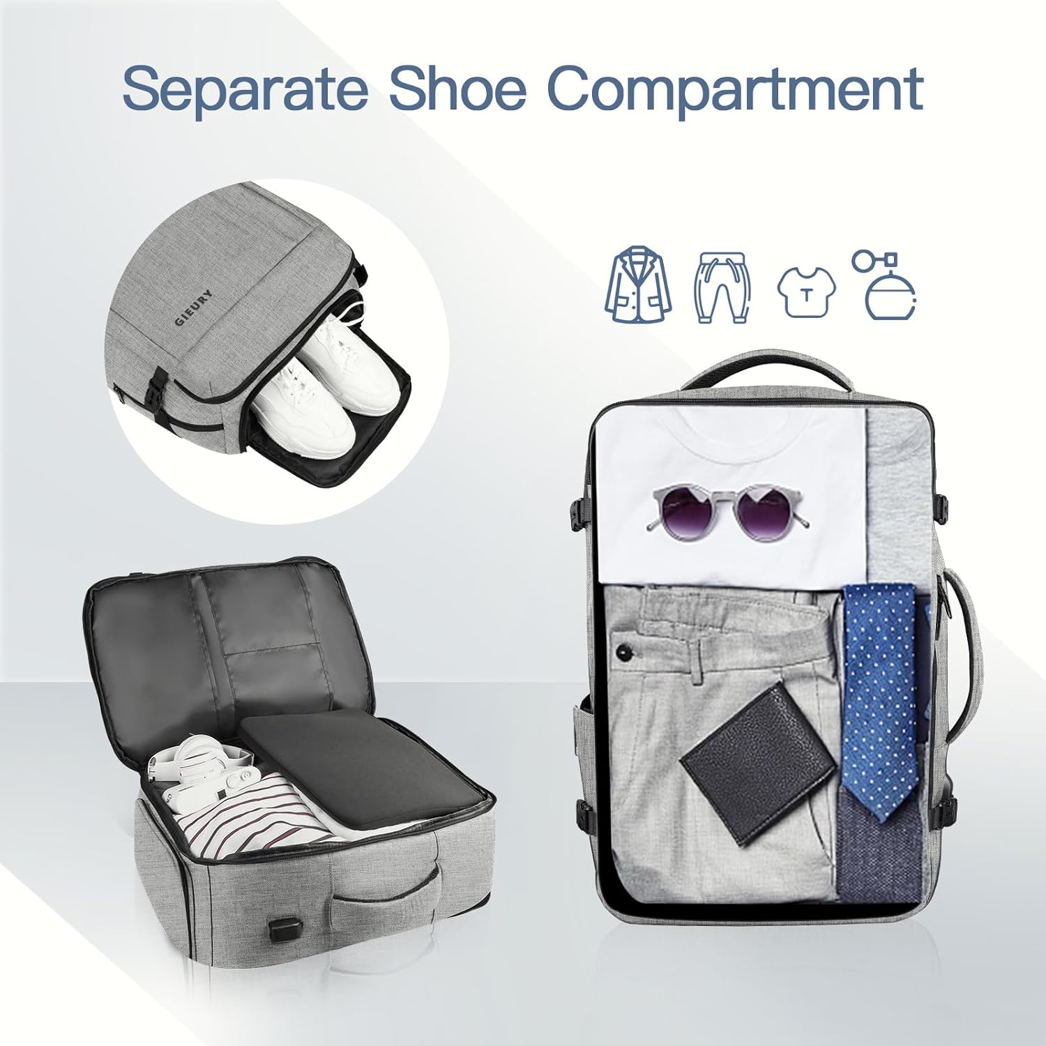 - Expandable & Extra Large Capacity: This 50L carry on backpack airline approved expands to provide more packing space for clothing, shoes, and travel essentials. It fits overhead and under-seat compartments, meeting standard carry-on size for most airlines . Ideal travel backpack for men, women, weekend trips, and Europe vacations.