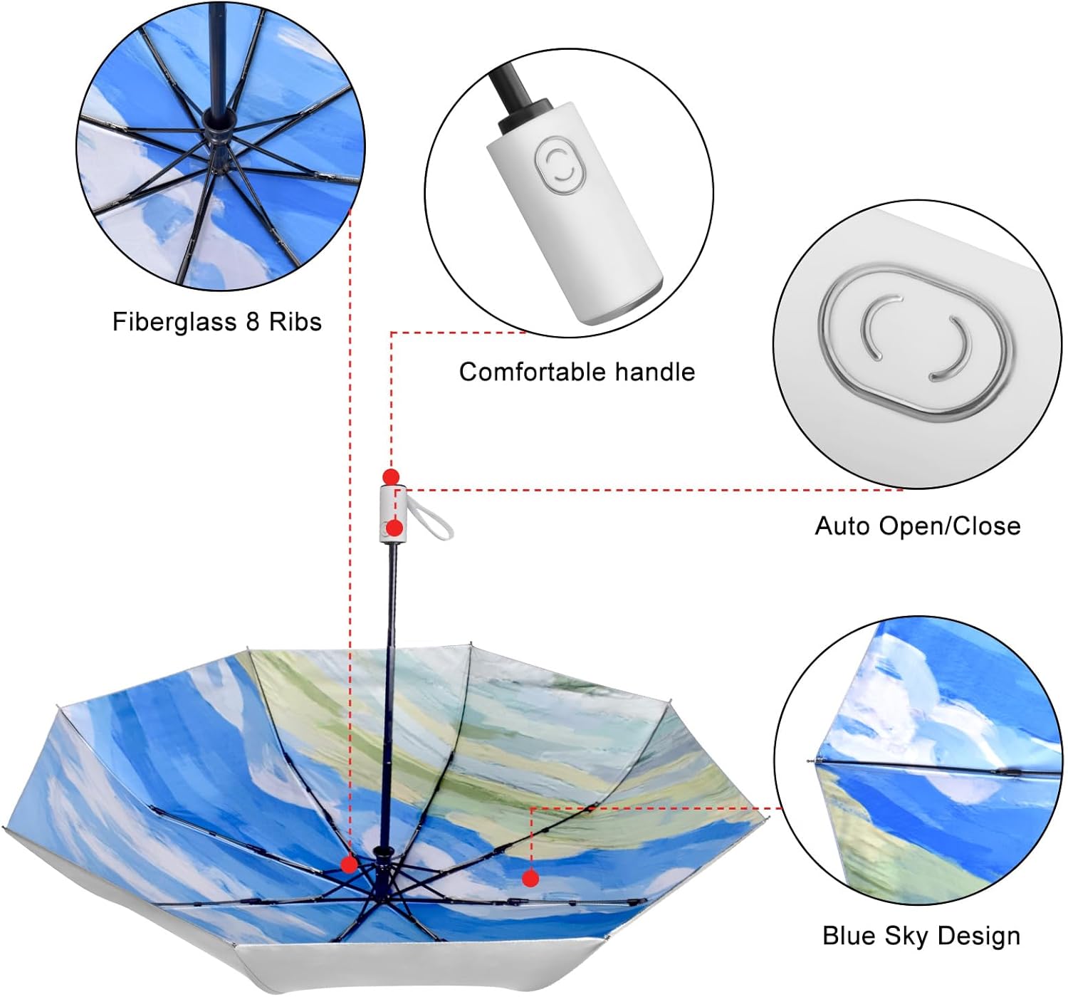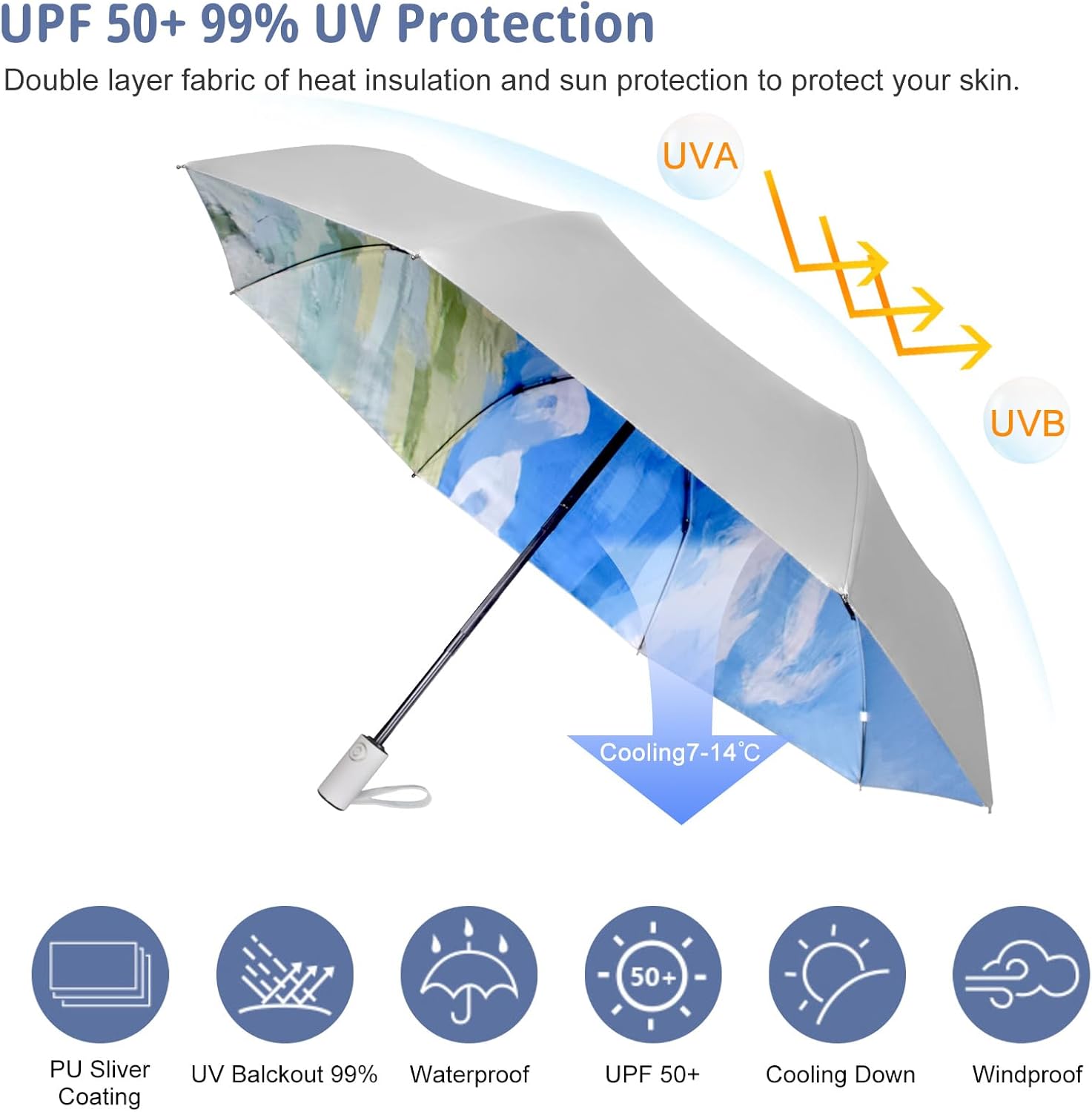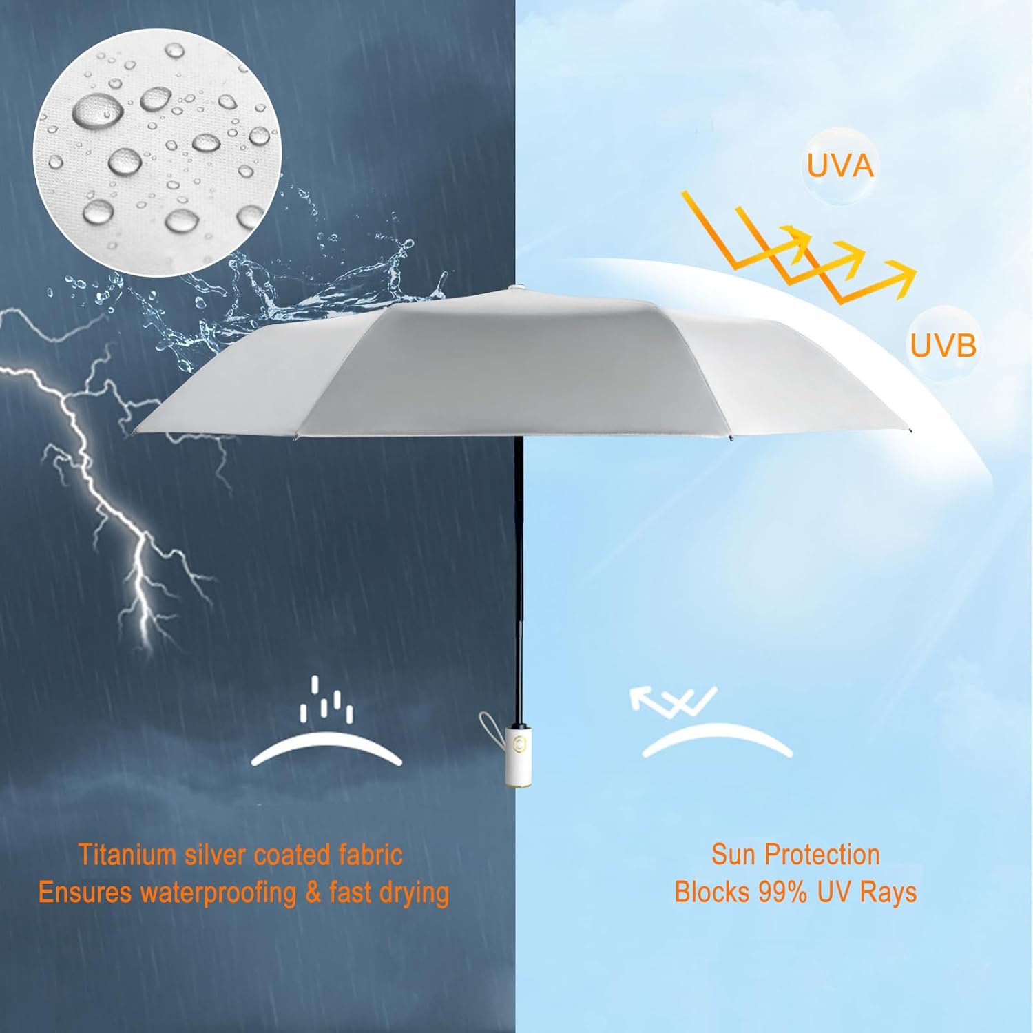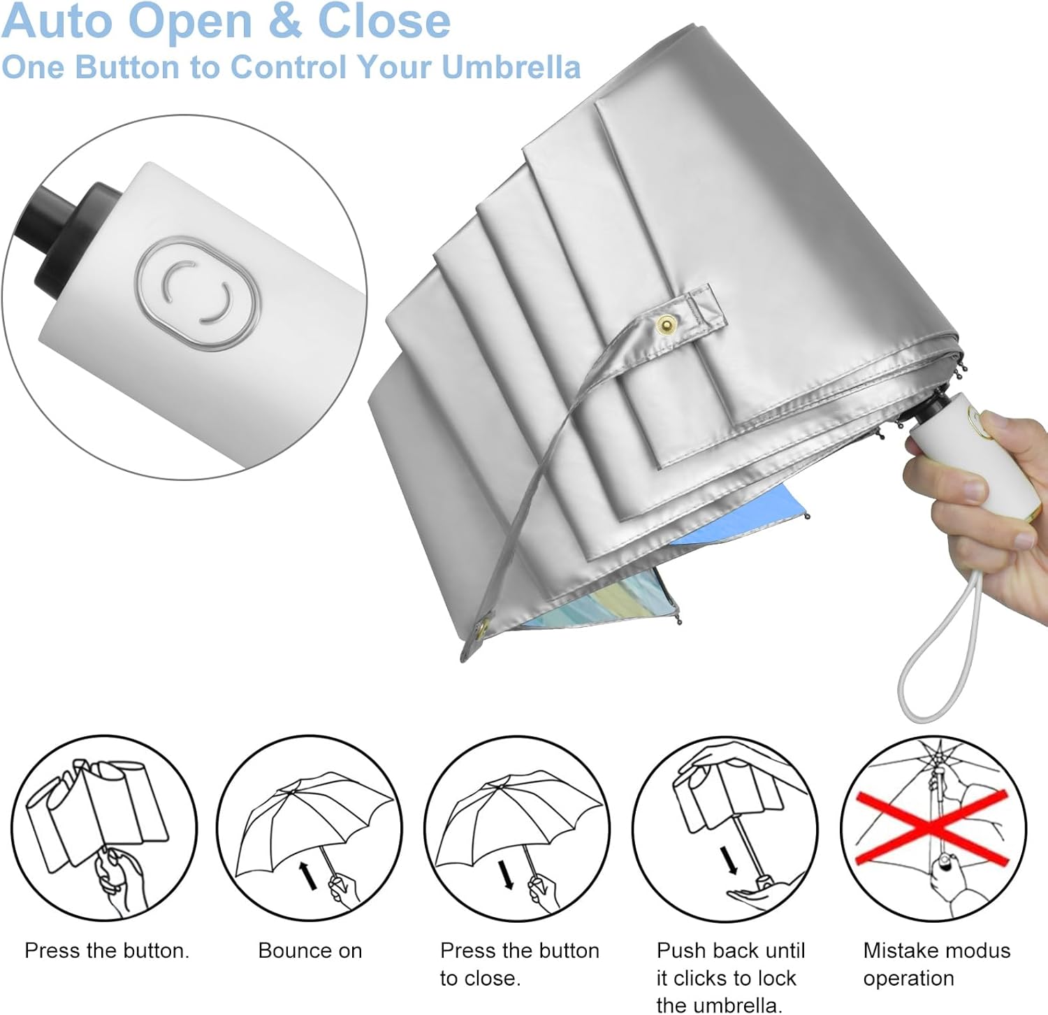 Cuby UV Sun Umbrella Compact Folding Travel Umbrella Auto Open and Close for Windproof, Rainproof & 99.9% UV Protection Parasol with Silver Anti-UV Coating