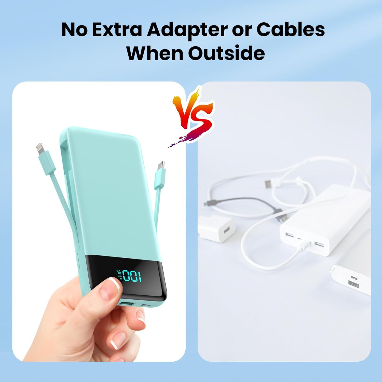 - Special Feature : Portable Charger Power Bank with Built in Cables and AC Wall Plug for iPhone 15/14/13/12/Samsung/Android, Travel Essential External Battery Pack ,PD USB C Fast Charging Power Bank, Airline Approved Safety Travel USB-C Charger,No need Carry Extra Cable and Adapter , 2 Ways to Recharging Power Bank Portable Charger Power Bank with Built in Cables and AC Wall Plug for iPhone 15/14/13/12/Samsung/Android, Travel Essential External Battery Pack ,PD USB C Fast Charging Power Bank, Airline Approved Safety Trav… See more