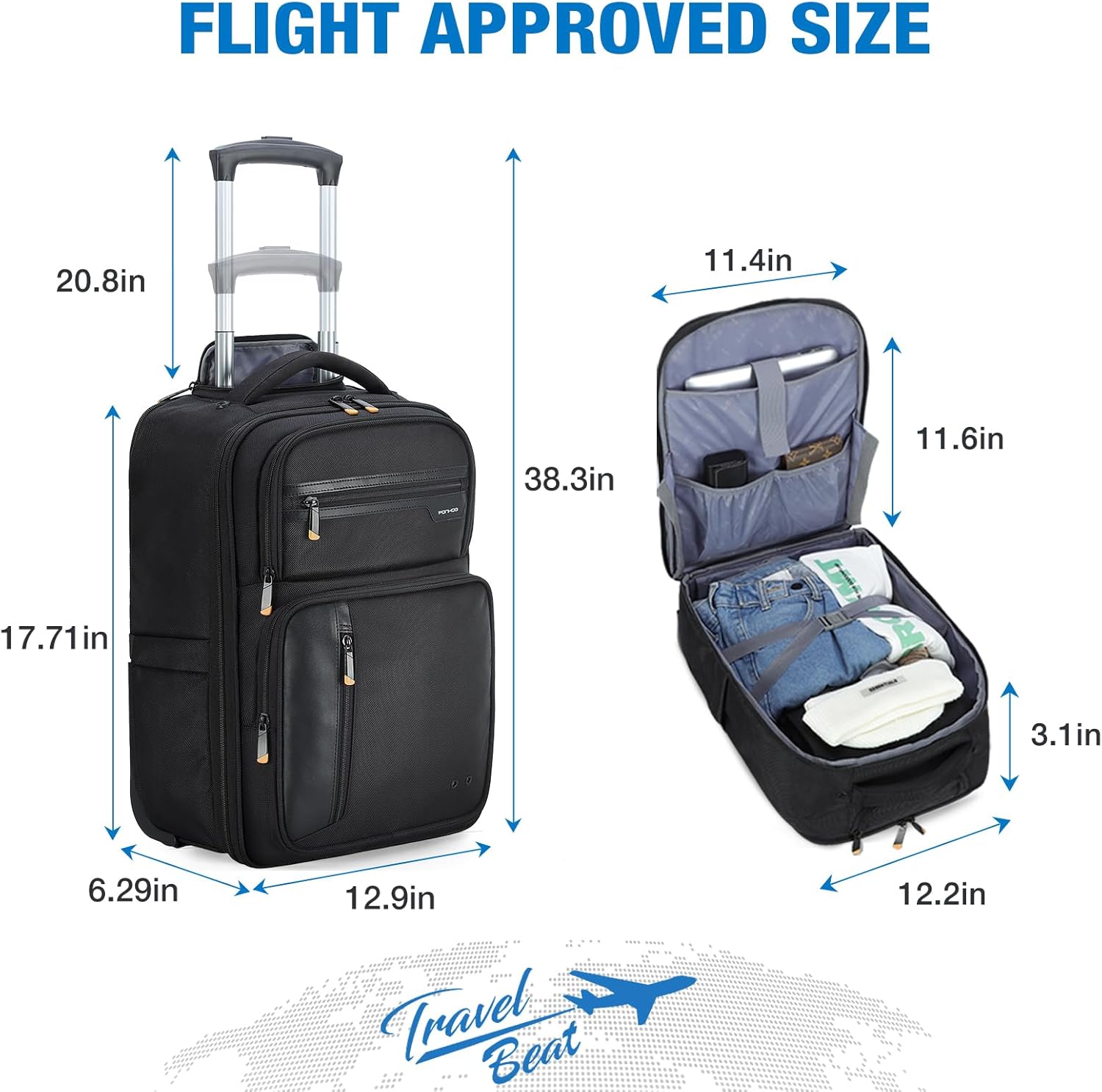 Rolling Backpack, 15.6 inch Laptop Backpack with Wheels, Flight Approved Water Resistant Underseat Carry on Lugagge Wheeled Bag for Men Women Adults, Black