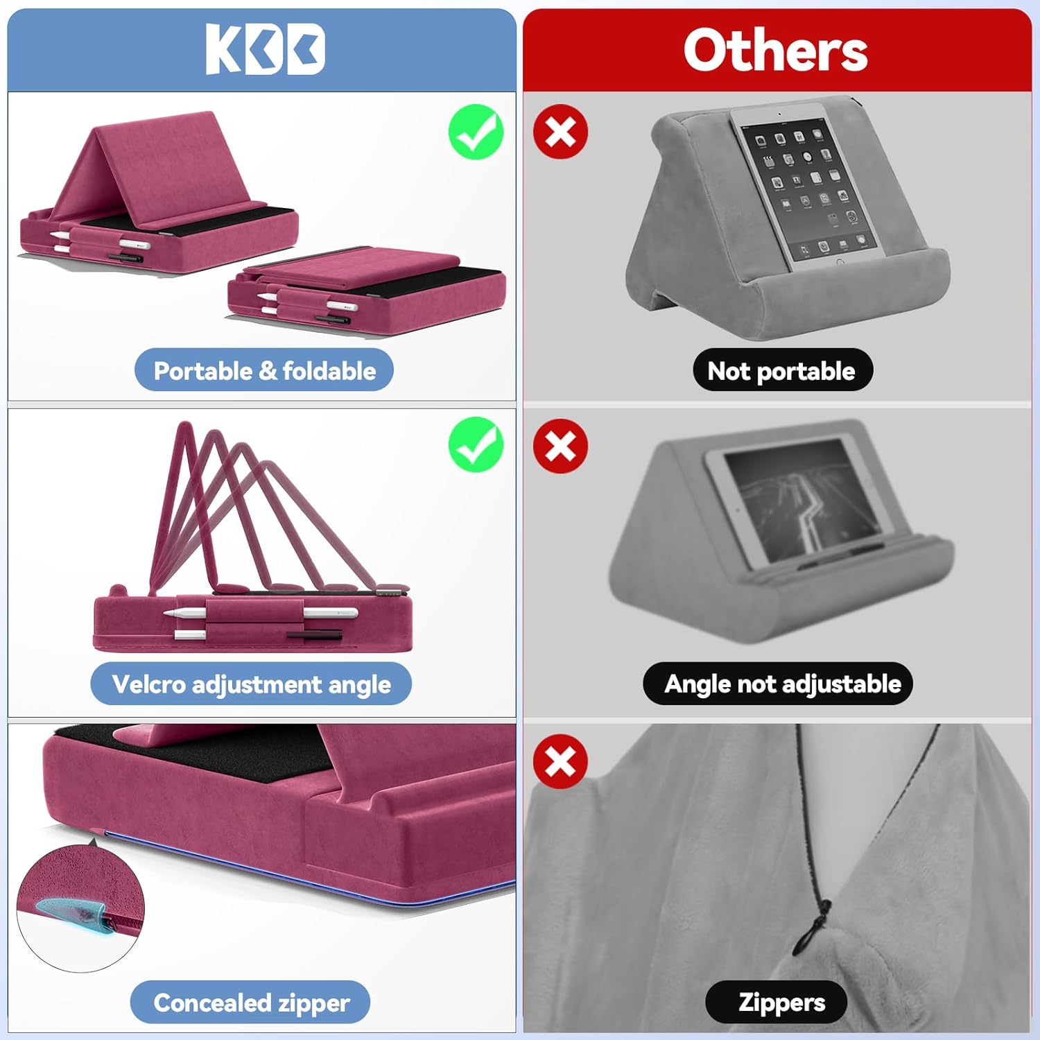 KDD Tablet Pillow Stand, Multi-Angle Viewing Ipad Holder for Lap, Bed and Desk, Foldable Soft Pad Dock with Stylus Mount Compatible with Ipad Pro 12.9, 10.5, 11, Air, Mini, Phones, Books, E-Reader