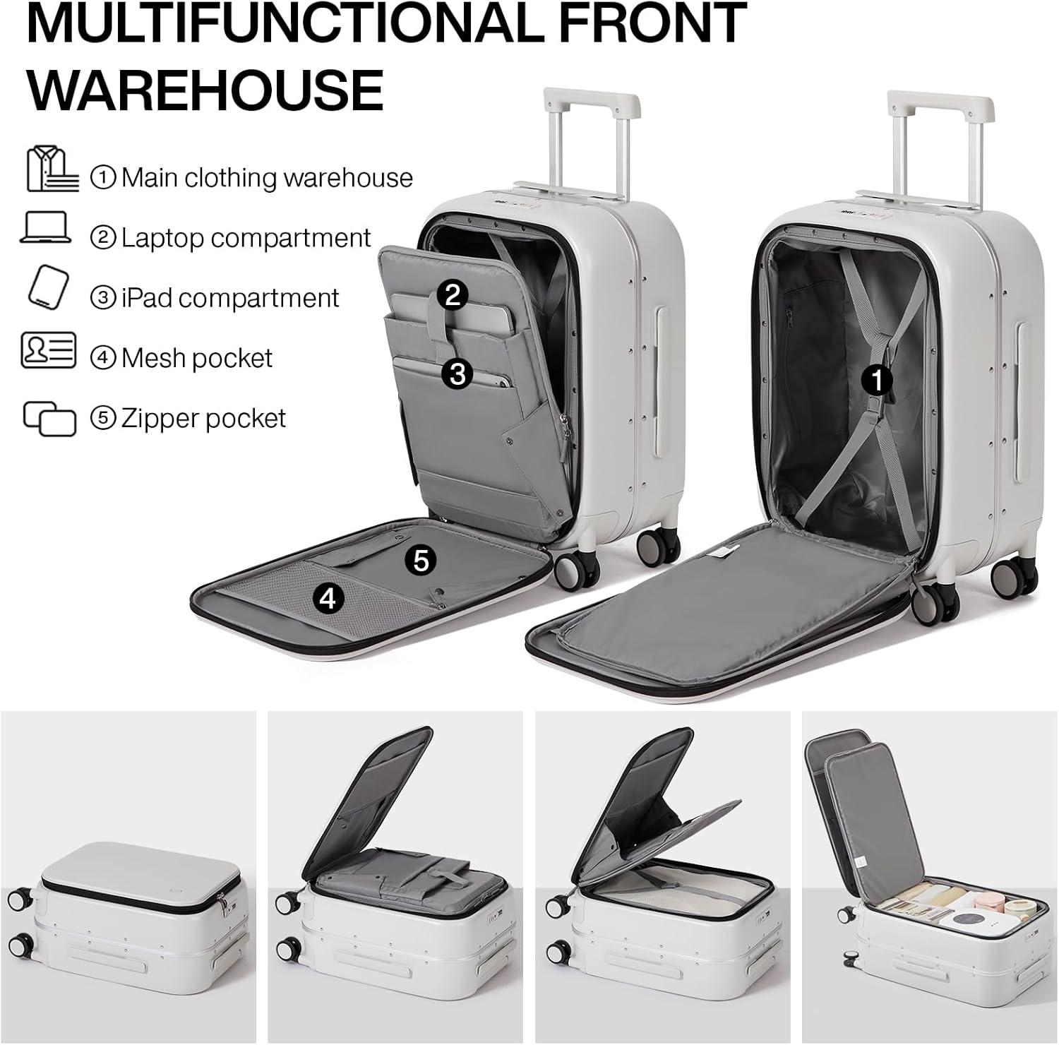- 【INNOVATIVE DESIGN】Front Laptop Pocket helps quickly access your essentials like 15.6'' laptops, documents and more, assist you save time. Stylish and beautiful design, this hard luggage has won the Kapok Award.