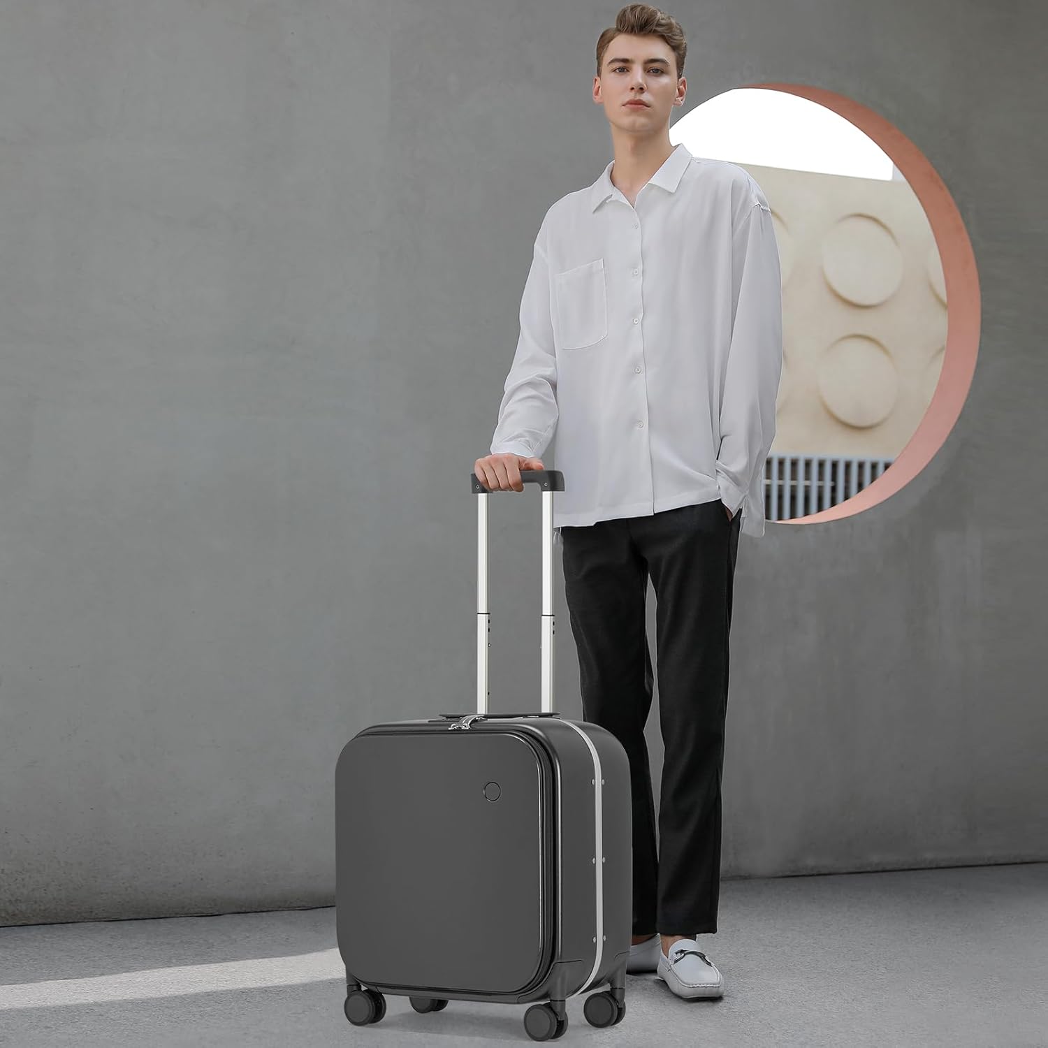 - 【INNOVATIVE DESIGN】Front Laptop Pocket helps quickly access your essentials like 15.6'' laptops, documents and more, assist you save time. Stylish and beautiful design, this hard luggage has won the Kapok Award.