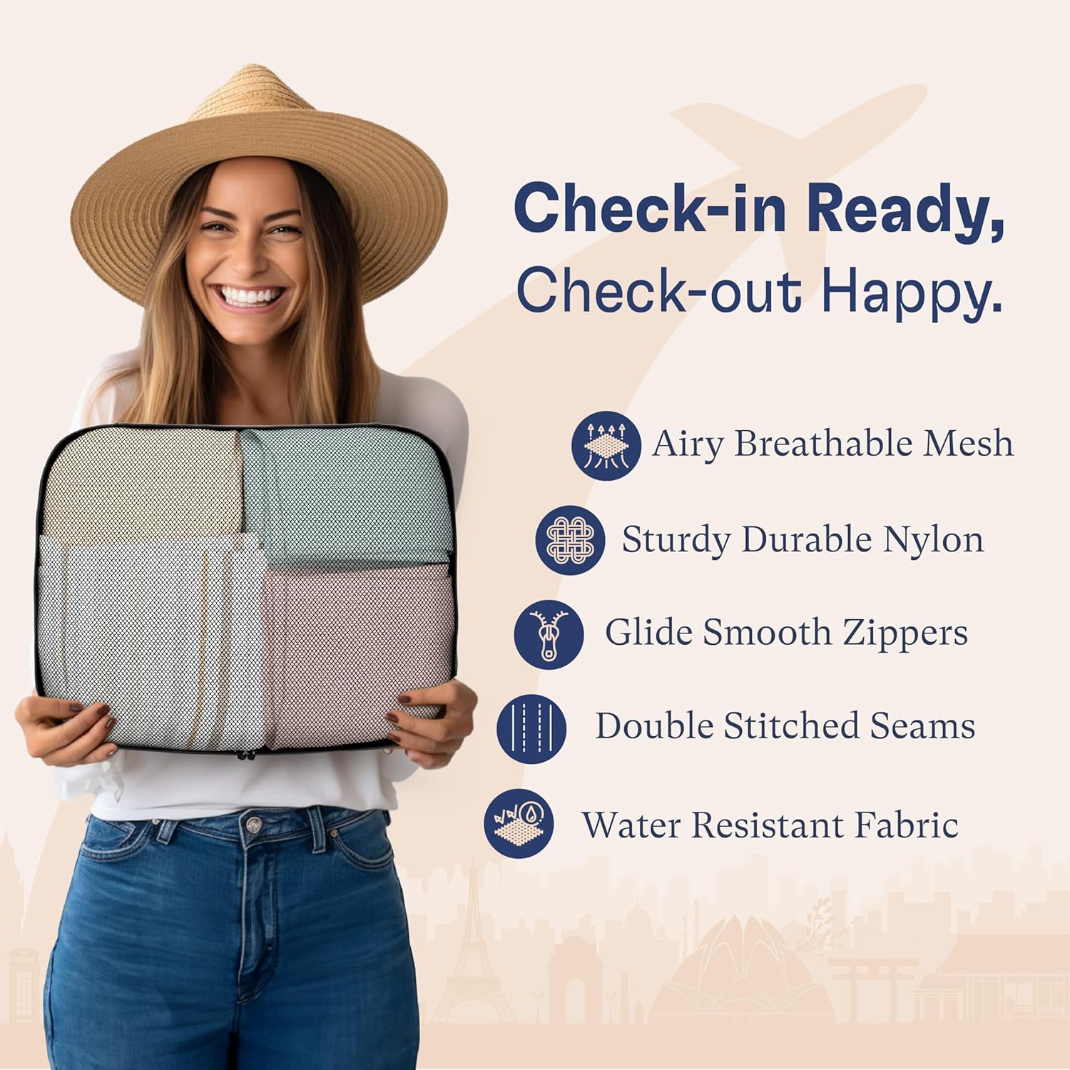 - Easy Clean Material – Watch liquids glide smoothly off your packing cubes making it easy for cleaning. Accompanied by smooth snag free ergonomic zipper pulls, pack your way through any travel adventures while resting assure your packing cubes are made from the best material.
