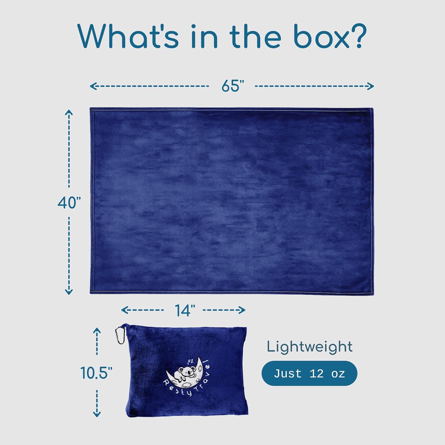 Resty 65"x40" Traveling Airplane Blanket, Navy Blue – Lightweight, Velvety Soft Blanket That Becomes a Travel Pillow – Must-Have Comfort for Planes & Road Trips – Travel Essentials for Women & Men