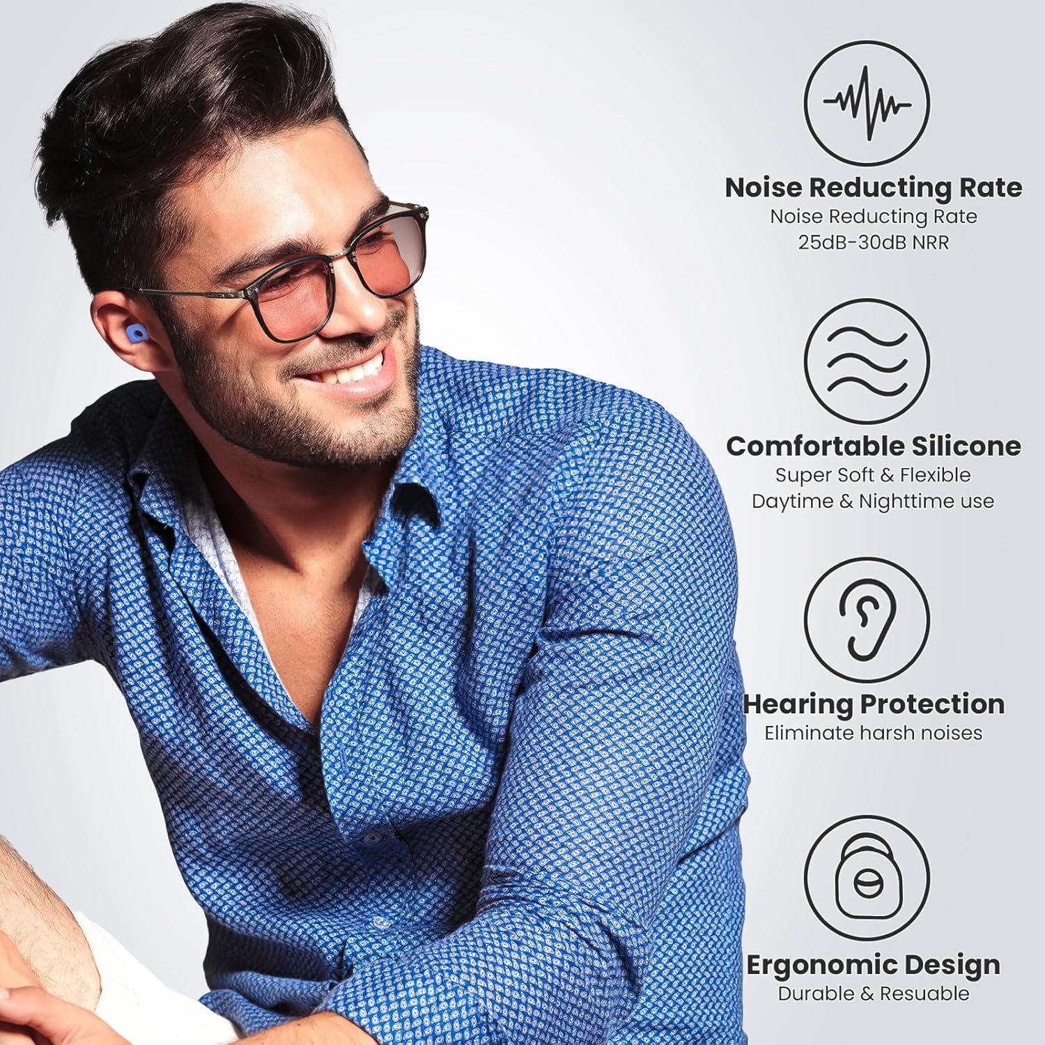 2 Pairs of Earplugs for Sleeping,Reusable Hearing Protection Earplugs with 8 Pairs Ear Tips & One Connector Cord,Soft Earplugs for Noise Reduction,Concert,Musician & Work - 25dB-30dB, Blue