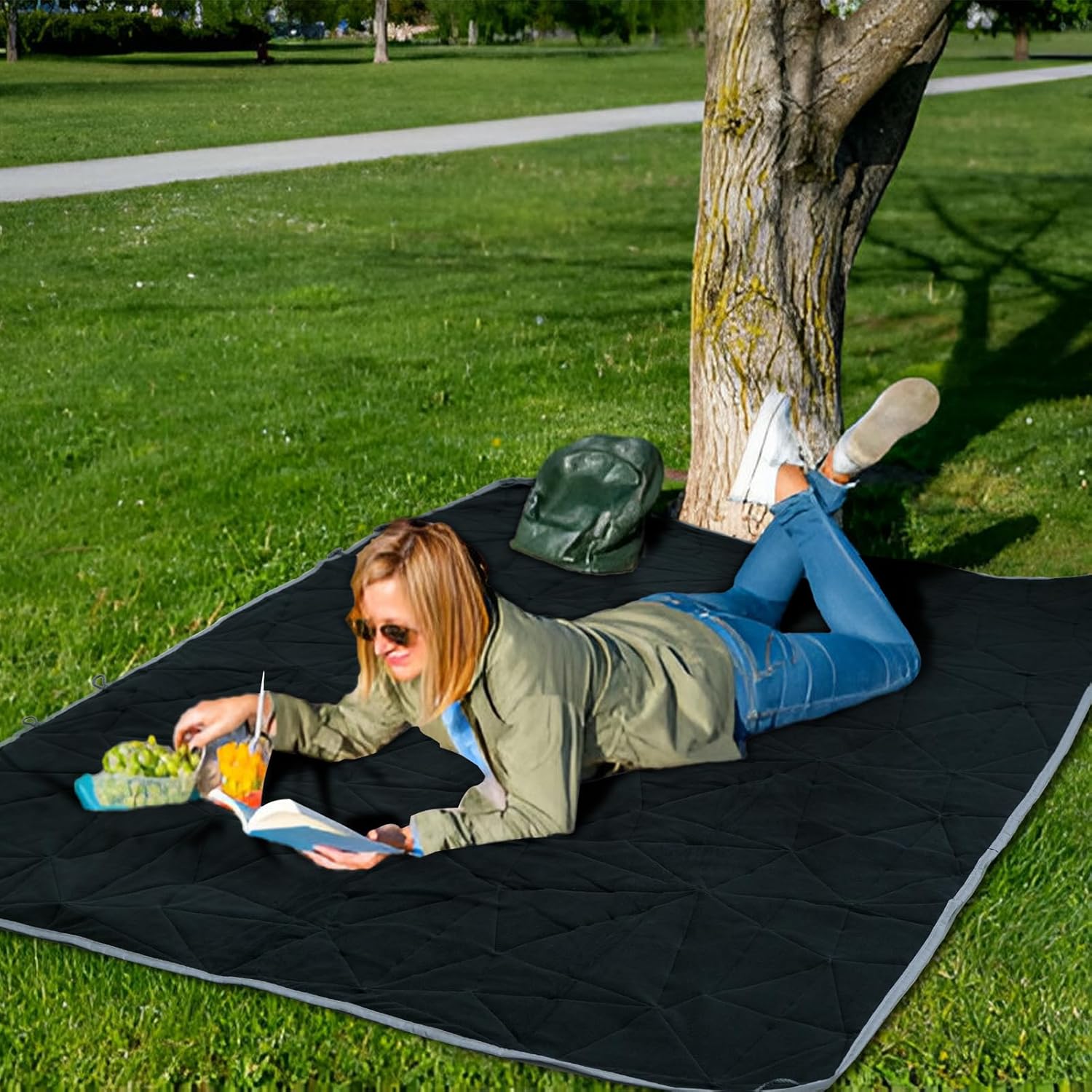 - Terrain Lines Quilted:The ultrasonic stitching technology enables the 210G waterproof oxford fabric and the 360g polar fleece material to be closely bonded. The 100g cotton lining in the middle makes the waterproof outdoor blanket more flexible and warm.