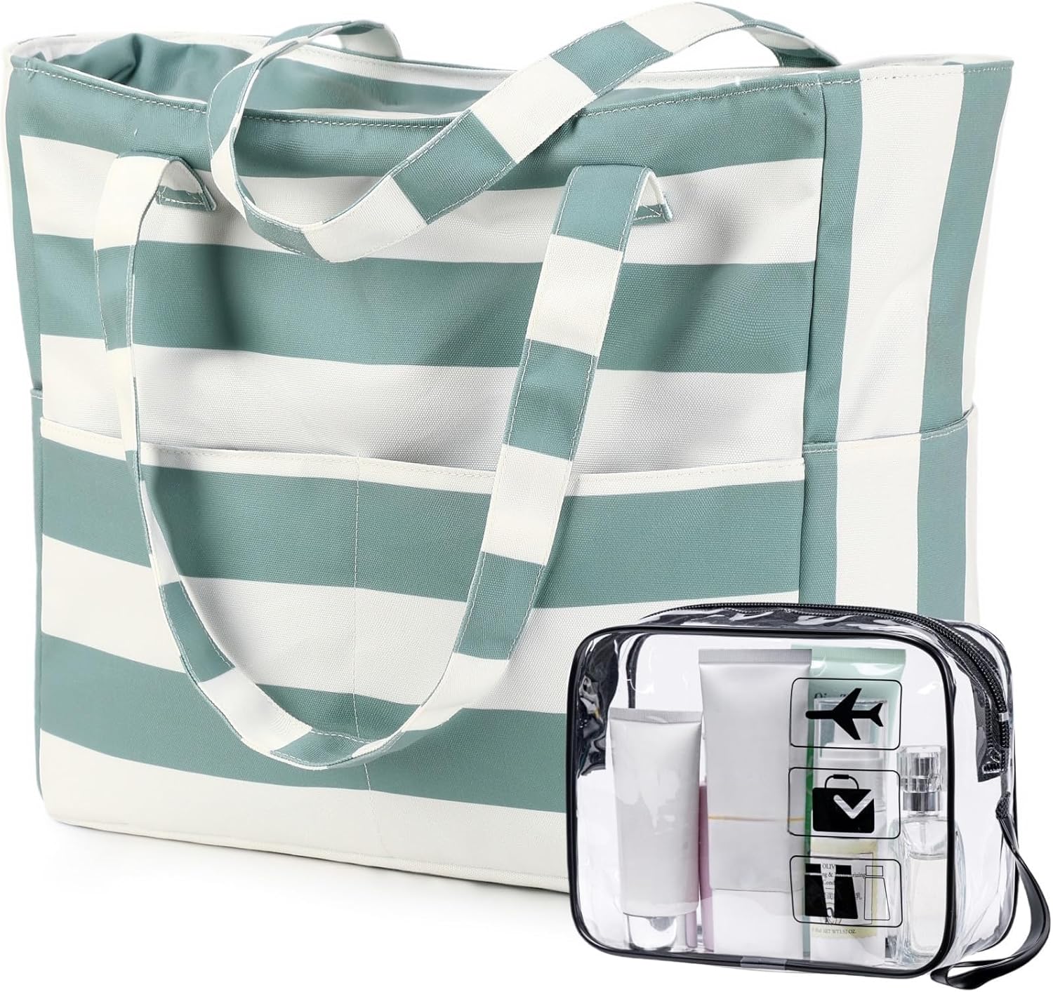 CAMTOP Waterproof Beach Tote Bag for Women Girls with Zipper Foldable Sandproof Pool Swim Bag Travel Carry On Gym