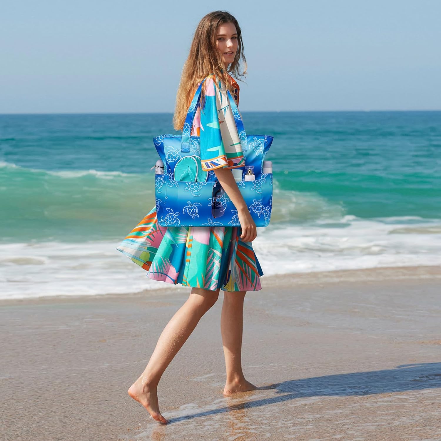 Waterproof Beach Tote Pool Bags for Women Ladies Extra Large Gym Tote Carry On Bag With Wet Compartment for Weekender Travel