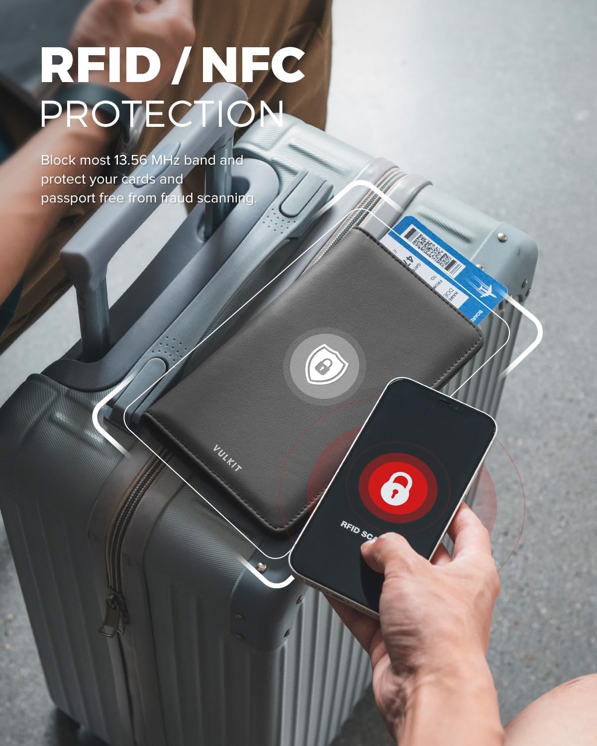 VULKIT Passport Holder Wallet RFID Blocking Travel Wallet for Men & Women