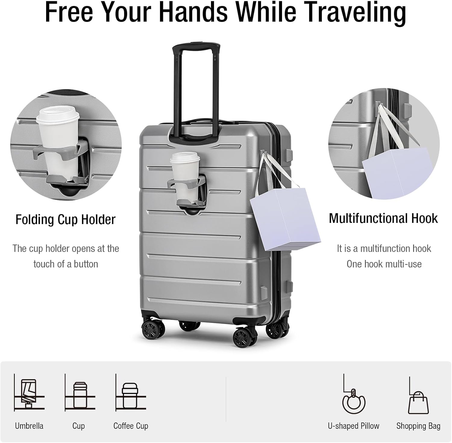 - Carry-on Luggage Sets with Cup Holder:Especially designed water/coffee cup holder and multifunctional hook for umbrella or bag hooking.best luggage 2025 for your travel,college,family trip or gift choice